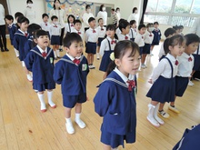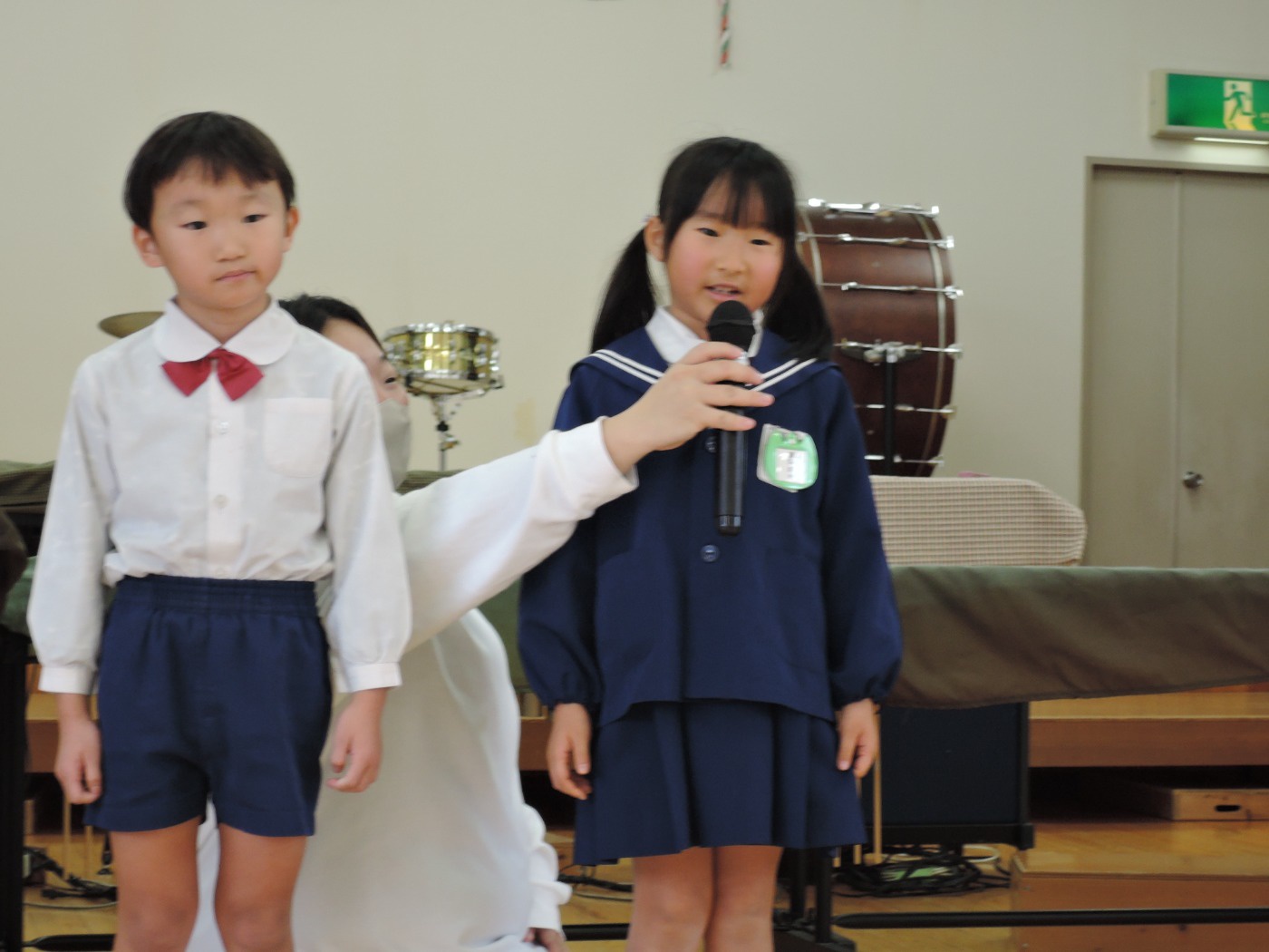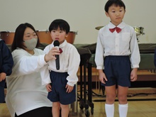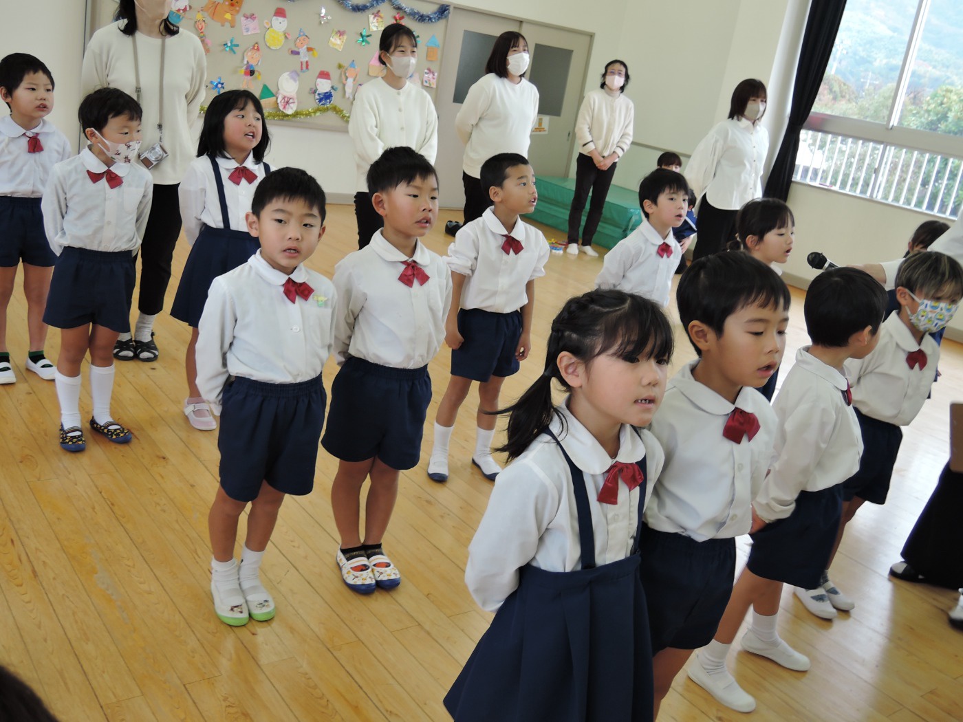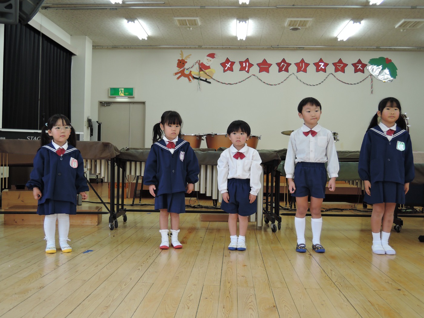 2学期の終業式を行いました。クラスの代表のお友だちが、2学期にがんばったことを発表してくれました。運動会や音楽発表会等の行事を通して、大きく成長した子どもたち。難しいことを乗りこえて、着実に目標に向かって進む年、へび年も残りわずかになりました。来年は馬年、情熱や勢いが高まり、大きな飛躍のチャンスとなる年と言われています。新しいことや諦めていたことに挑戦できるとよいですね。皆様が良い年を迎えられますようにお祈りしています。