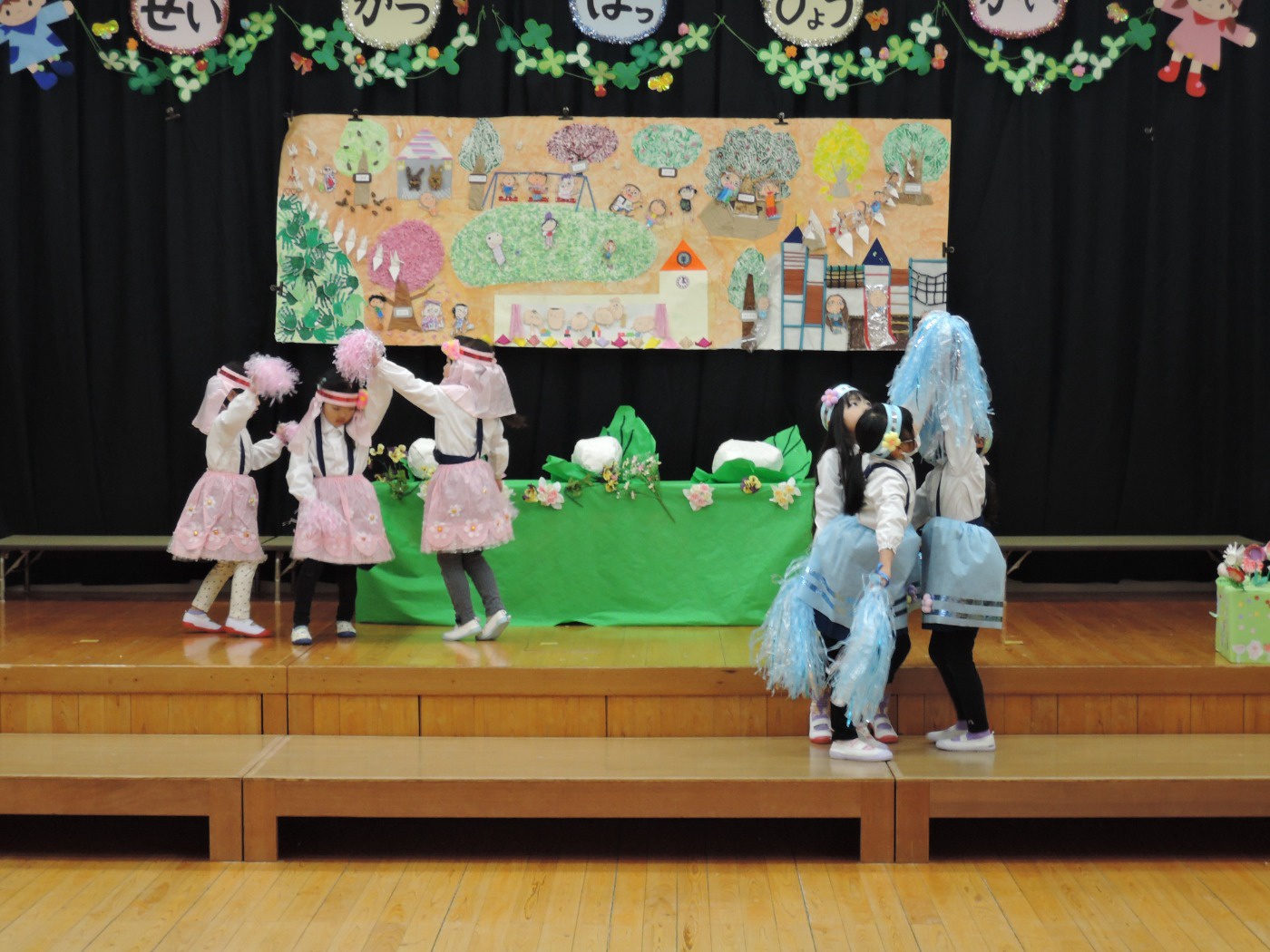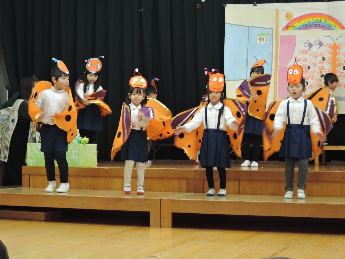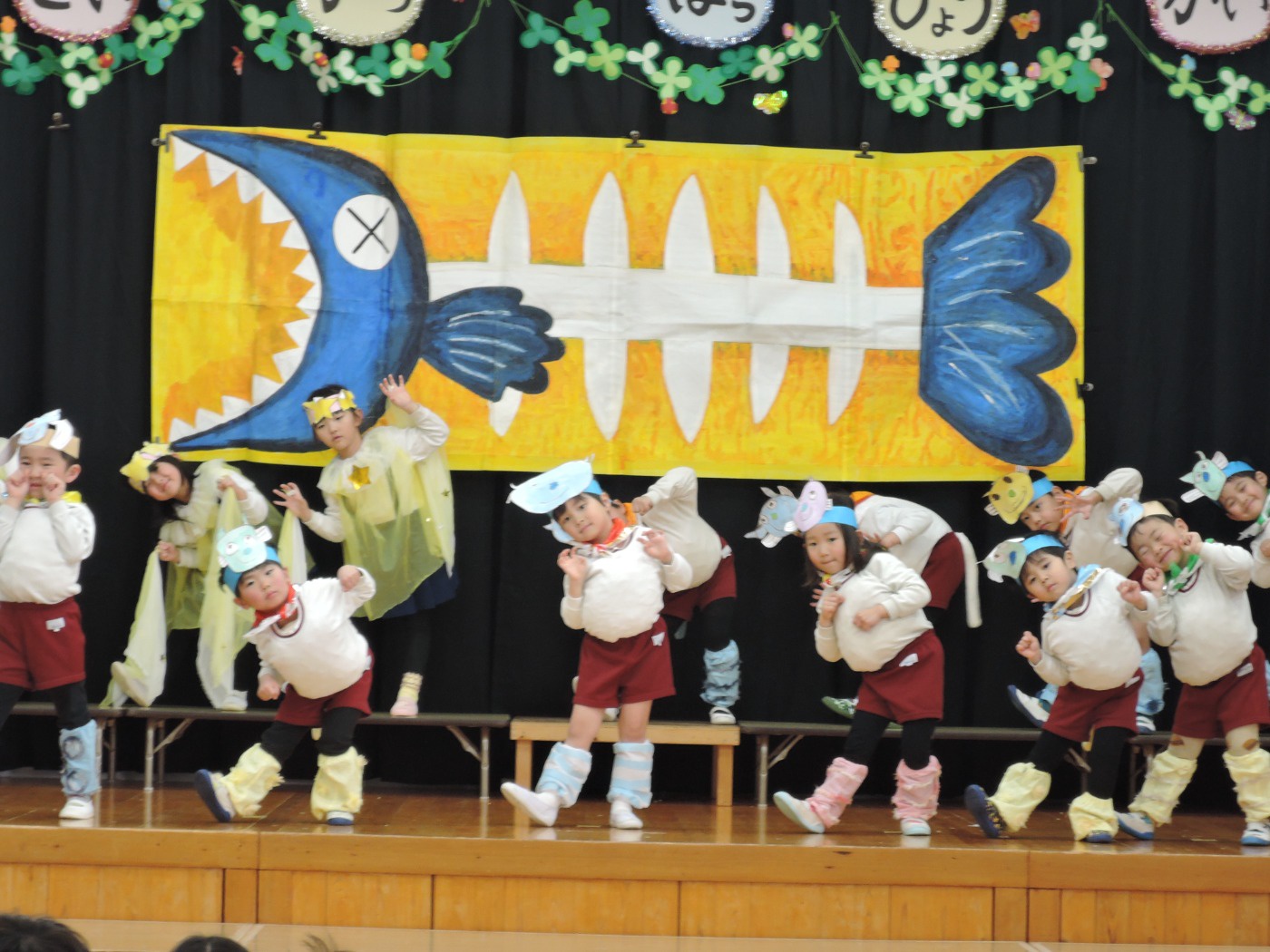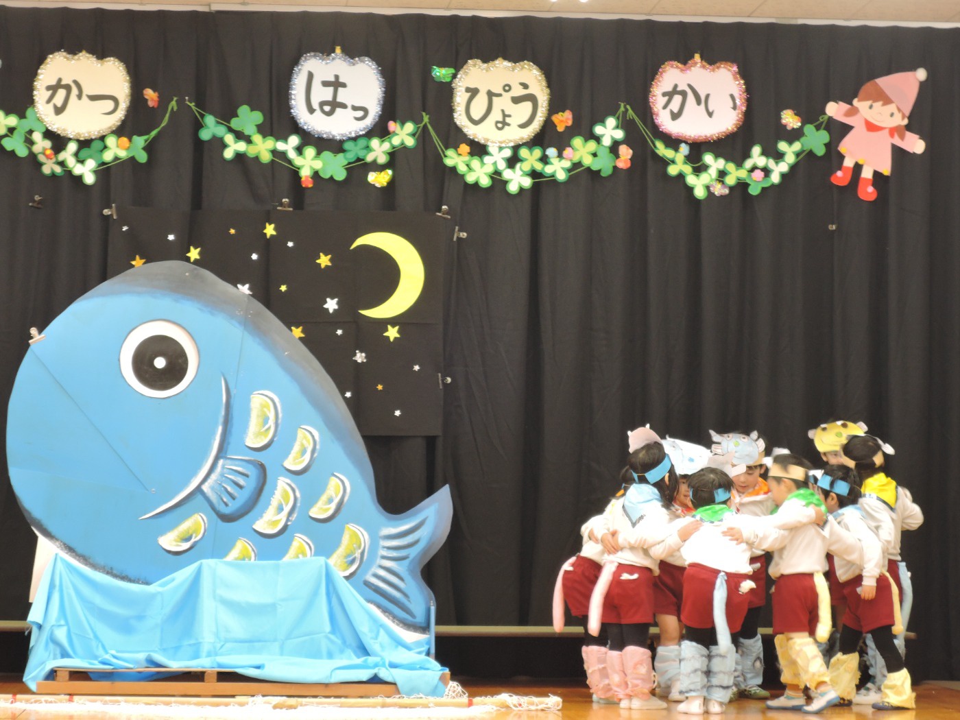 生活発表会に向けて長い間練習に励みました。「家でも練習をしているんですよ」という声を何度も耳にしました。子どもたちはどんどん劇の世界に入り、役になりきって劇遊びを楽しむようになりました。今までの練習の成果を、たくさんの保護者の方、地域の方に観ていただくことができて幸せでした。ありがとうございました。