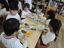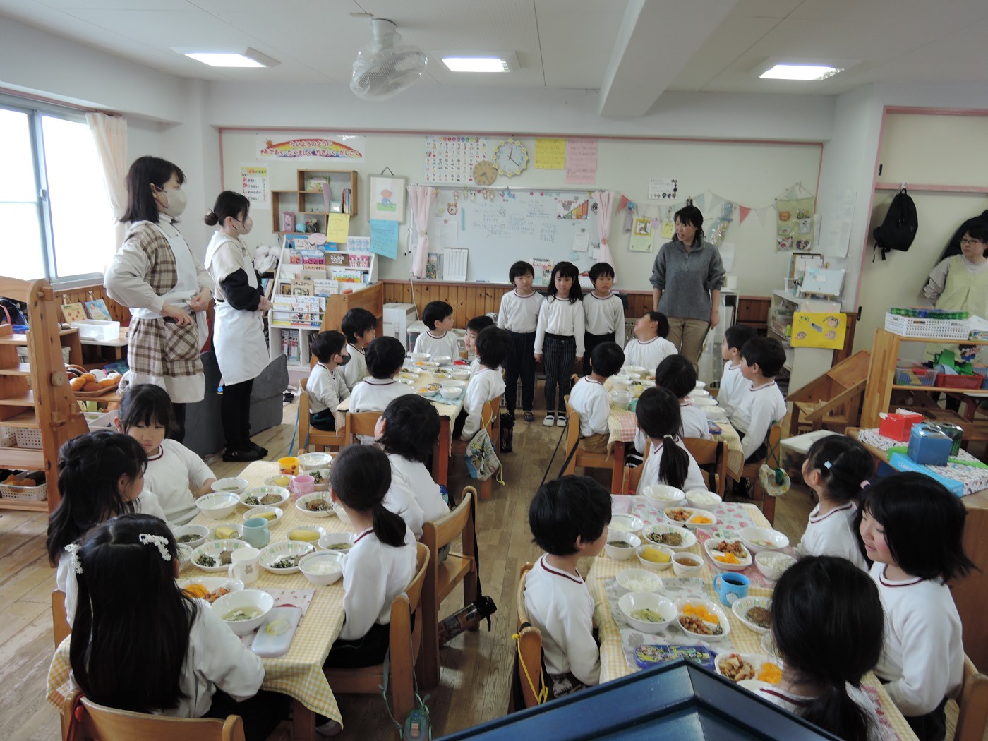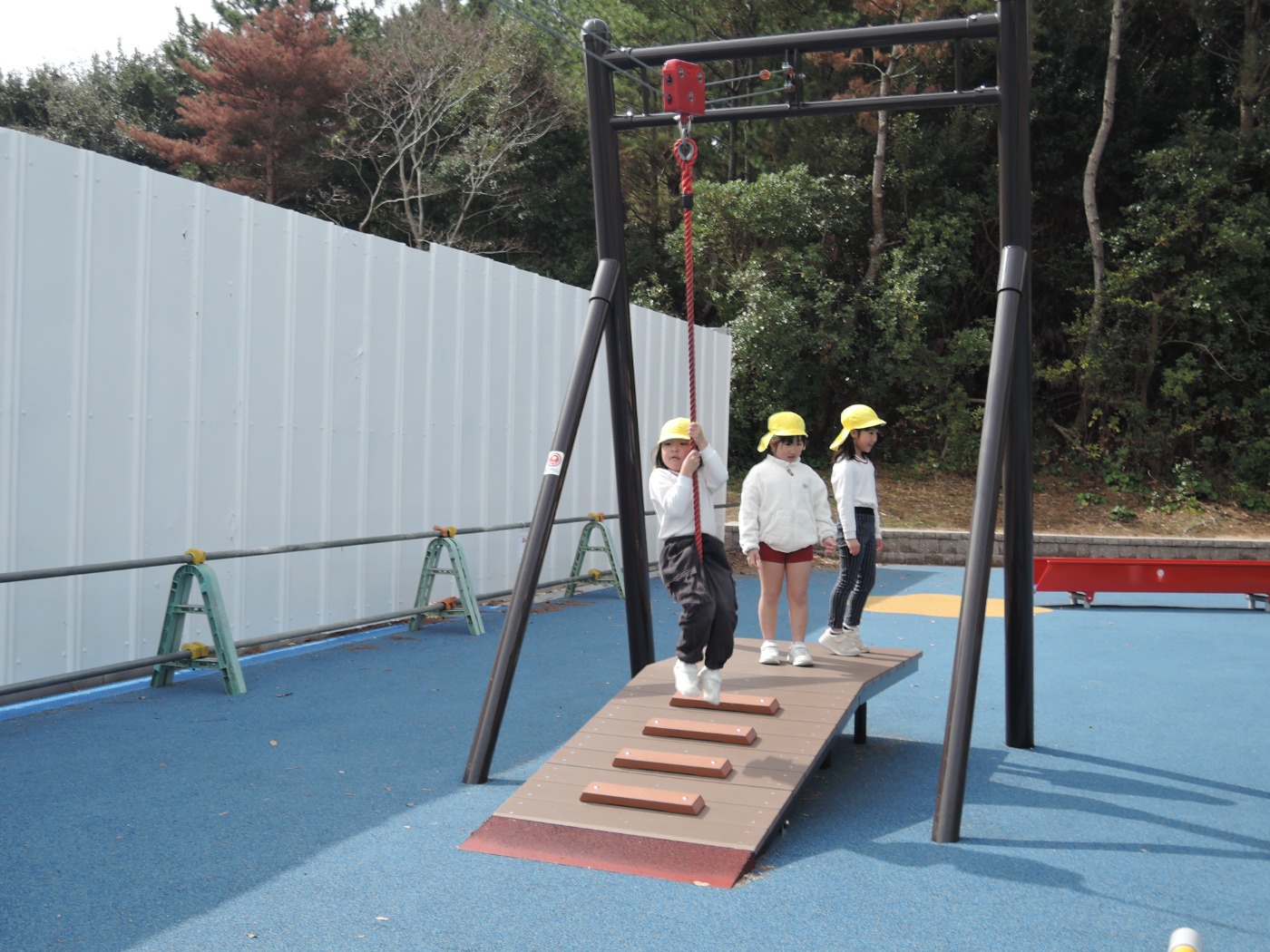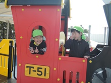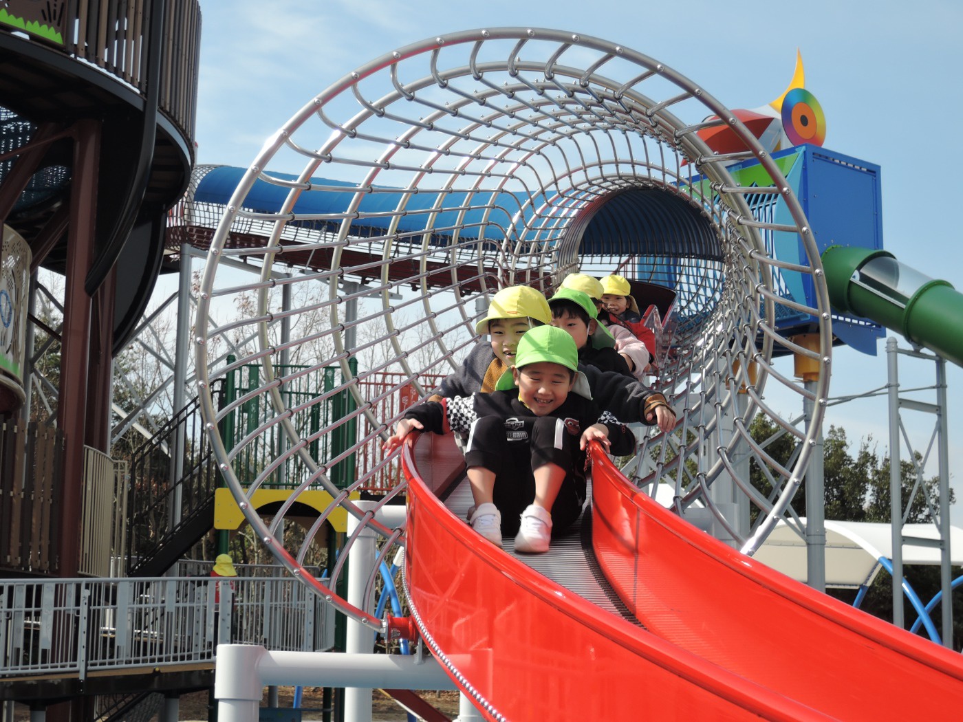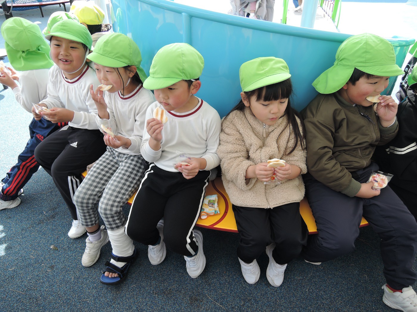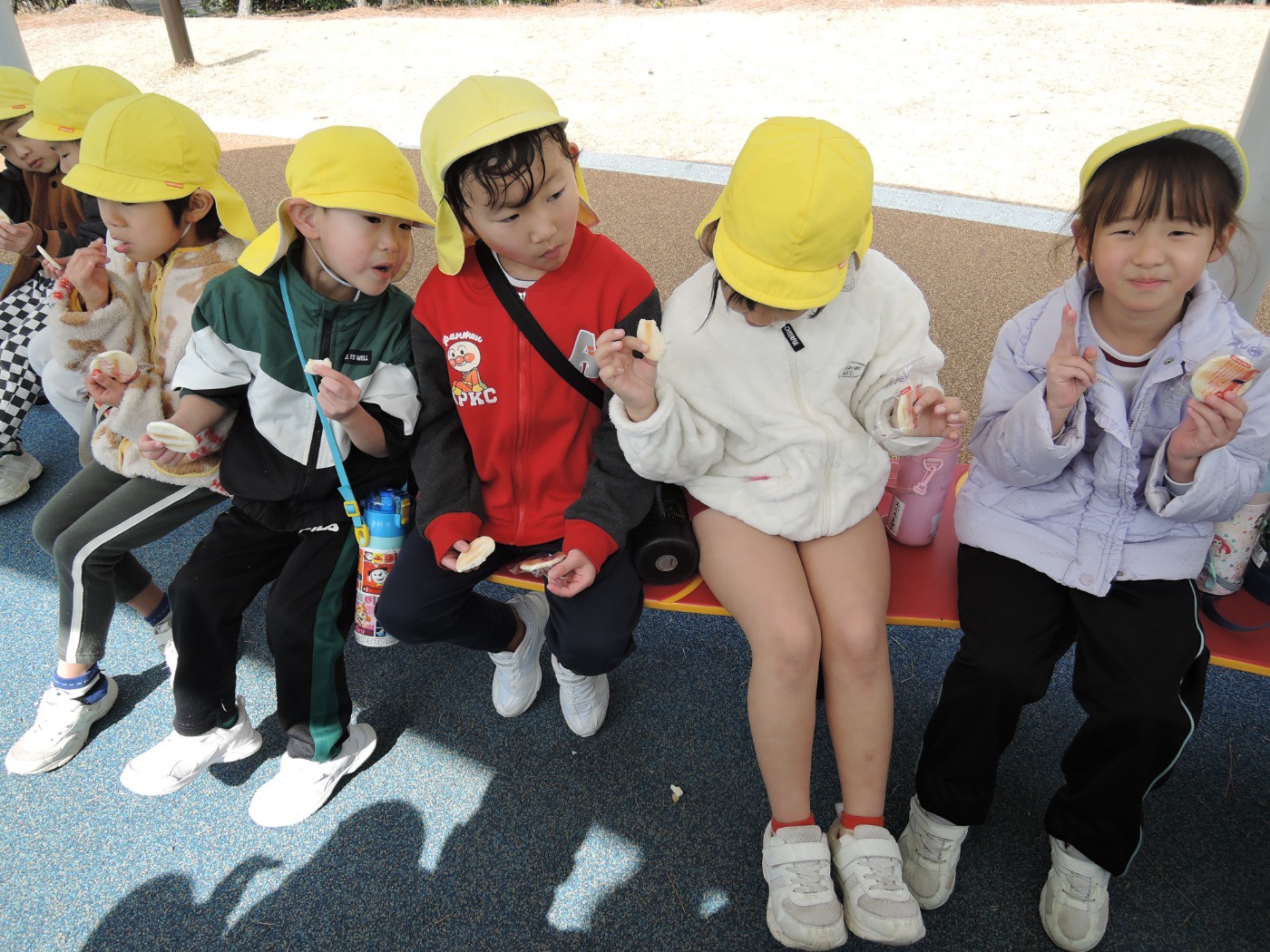 年長のすずらん組・ゆり組が山口きらら博記念公園内にある大型複合遊具広場『きららんど』に出かけました。バスの中では、なぞなぞやクイズで盛り上がっていましたが、きららドームが見えると歓声があがりました。到着するとクラスごとに記念写真を撮ってから、「ぼうけんエリア」でダイナミックに遊びました。どの遊具も魅力たっぷり。気に入った遊具は何度も繰り返し遊んでいました。東園にもどると、すずらん組のお部屋で一緒に美味しい給食をいただきました。卒園まで2週間、また1つ、楽しい思い出が増えました。すずらん組・ゆり組の絆は深まっています。
