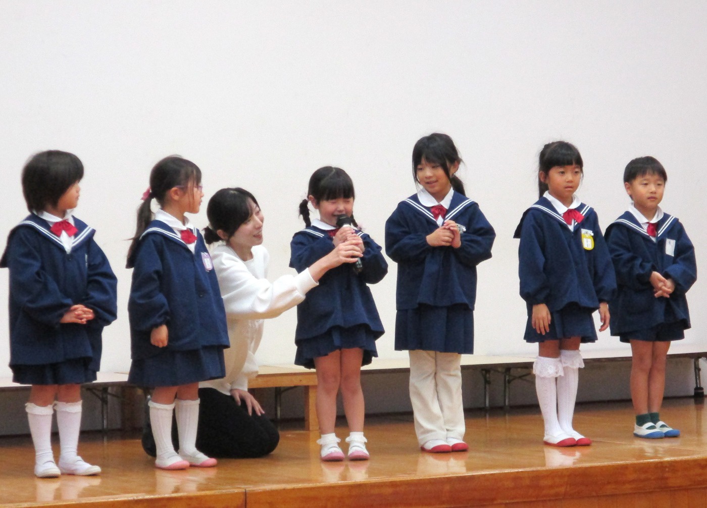 年中・年長組代表のお友だちが、2学期の思い出を堂々と発表しました。