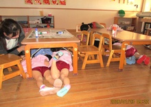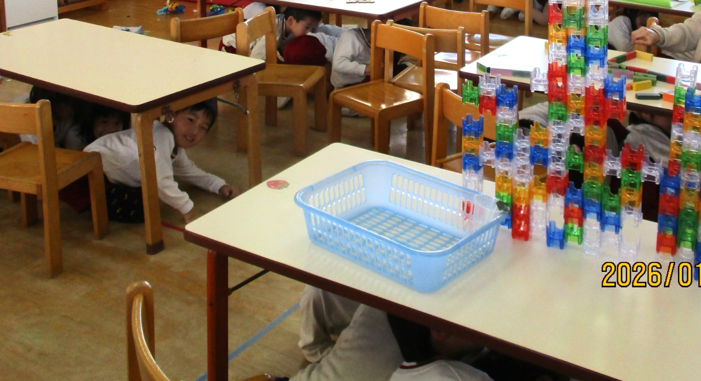 「地震の時は『ダンゴムシ』になって机の下」が合言葉です。