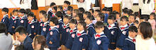 春爛漫!桜吹雪の舞い散る4月1日(水)。先陣を切って、牟礼保育園の入園式・進級式を行いました。新しいお友だちを迎える嬉しさと1つお兄さんお姉さんのクラスになった喜びがホールに溢れました。何もかも新しい環境にちょっぴり戸惑いながらも、クラスカラーの名札をつけて得意げな子どもたちの表情をご覧ください。