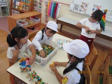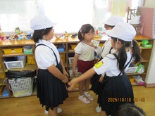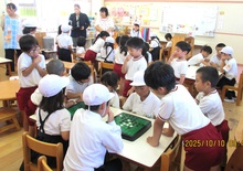 「幼保小架け橋プログラム」の一環として、牟礼南小1年生が牟礼幼稚園・保育園に手作りおもちゃを届けにきてくれました。