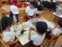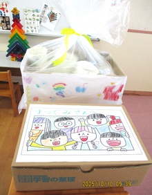 心のこもった手作りおもちゃ(まつぼっくりけん玉・クルクルへび)を届けていただきありがとうございました。3学期には年長組さんが牟礼南小学校へ足を運び、学校探検をさせていただく予定です。