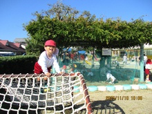 力強くネット太鼓橋の頂上までよいしょ!見える世界が新鮮!