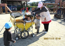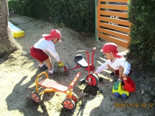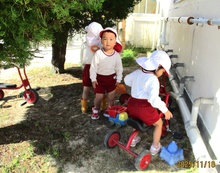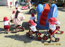 三輪車部隊、レッツゴー!あれれ?大きな園児?も混じっていますねえ