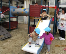 1歳児クラスさんもミニハグスのすべり台で達成感!