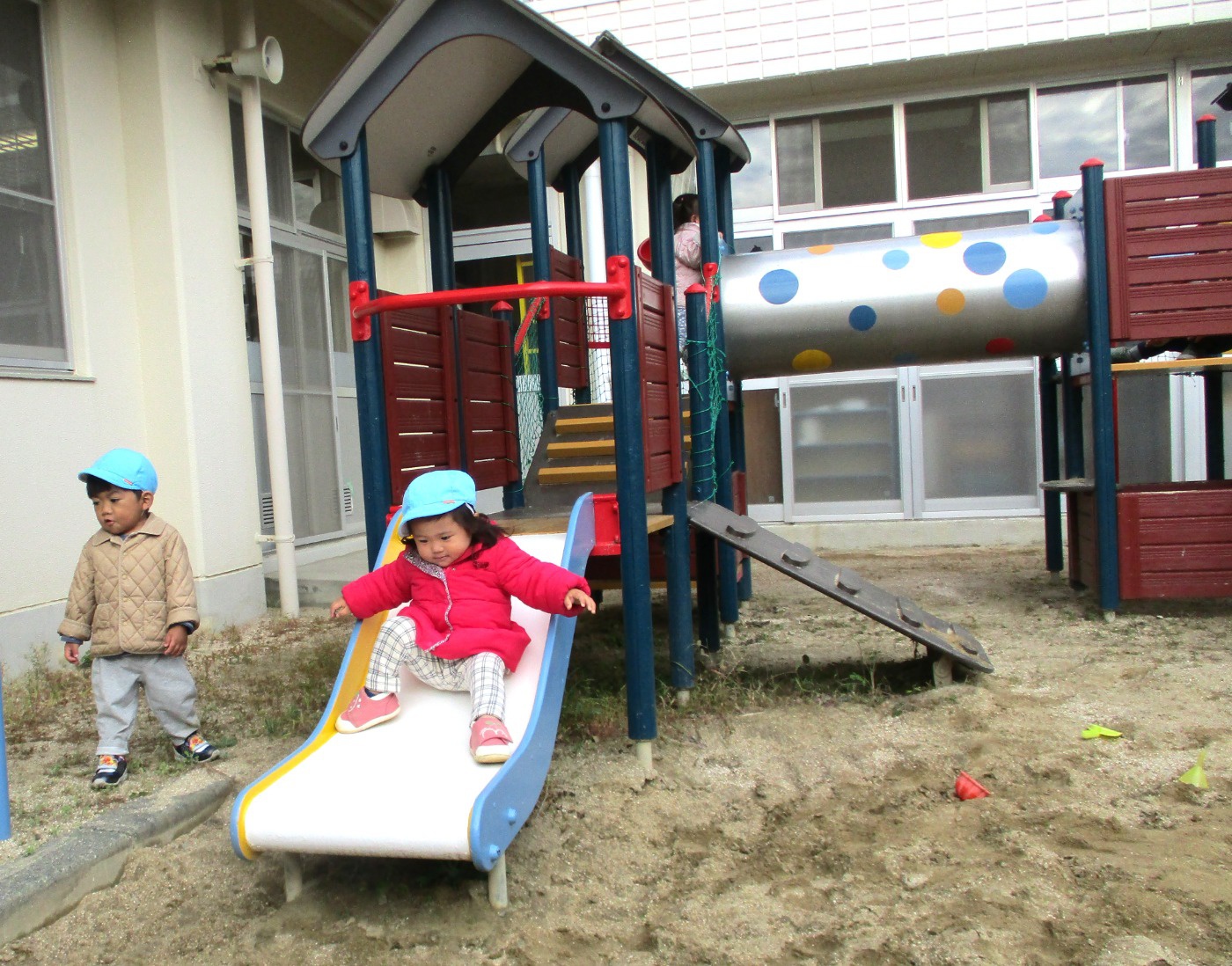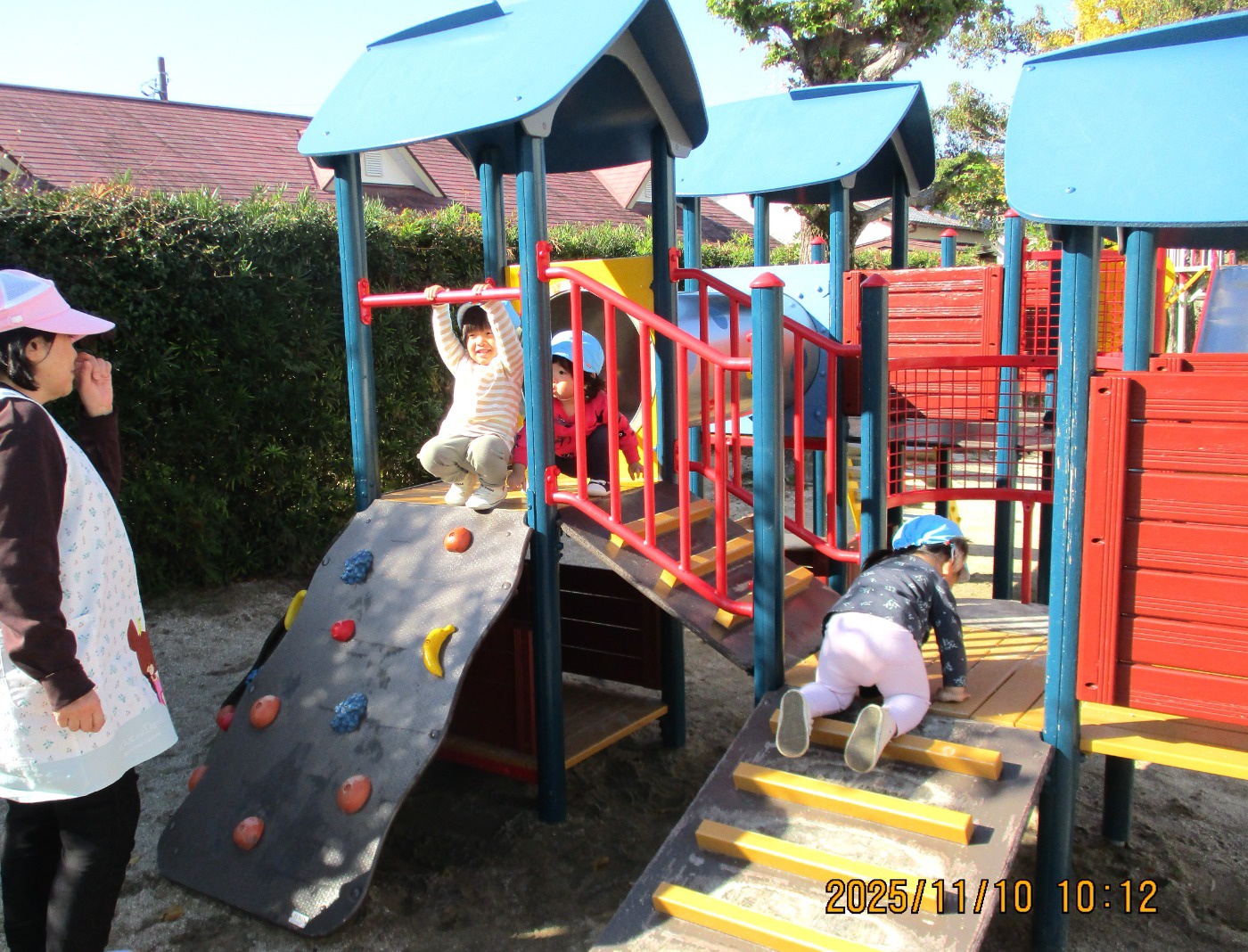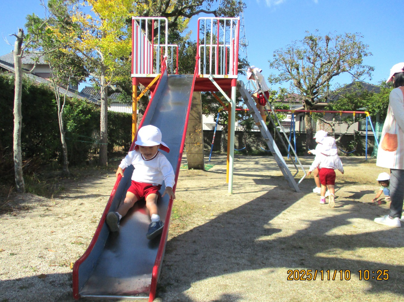 階段を上ってすべり台シュ~!勢いを上手にコントロールしている姿に成長を感じます。