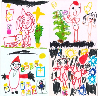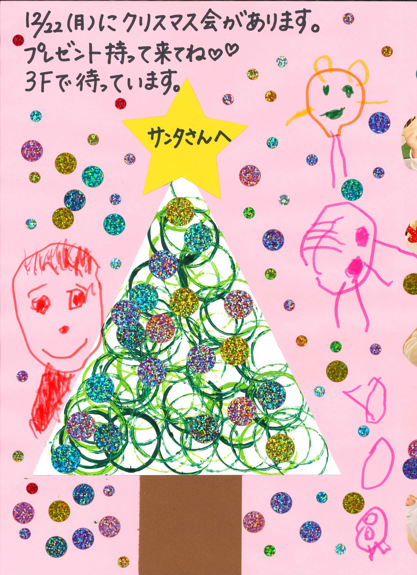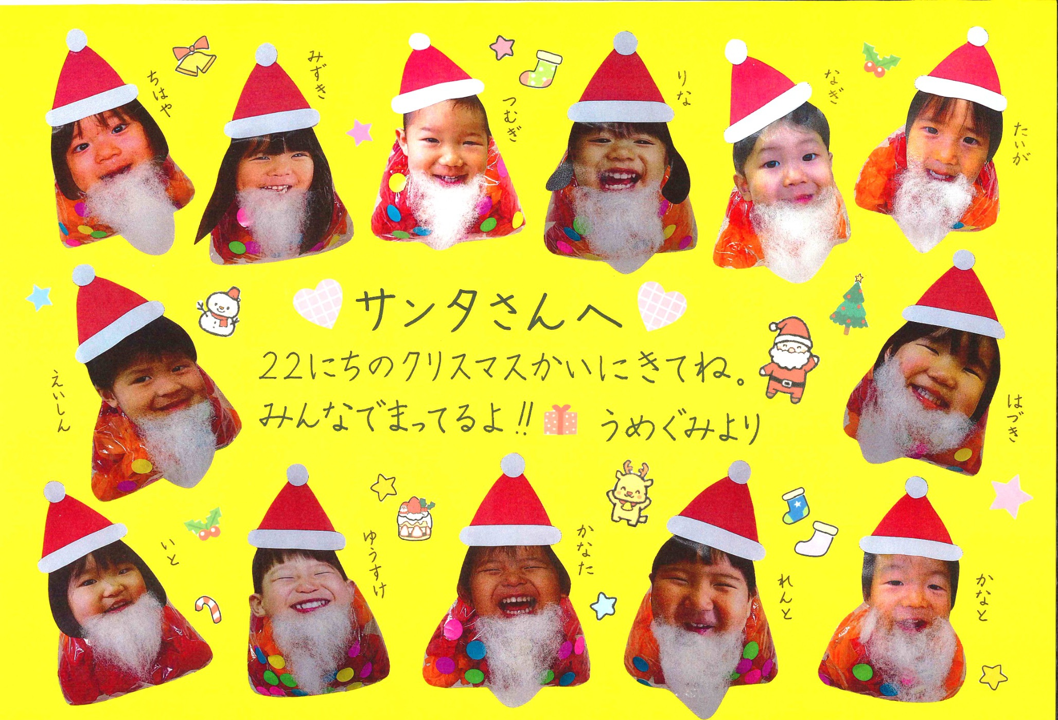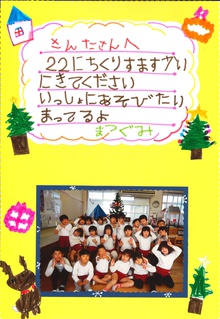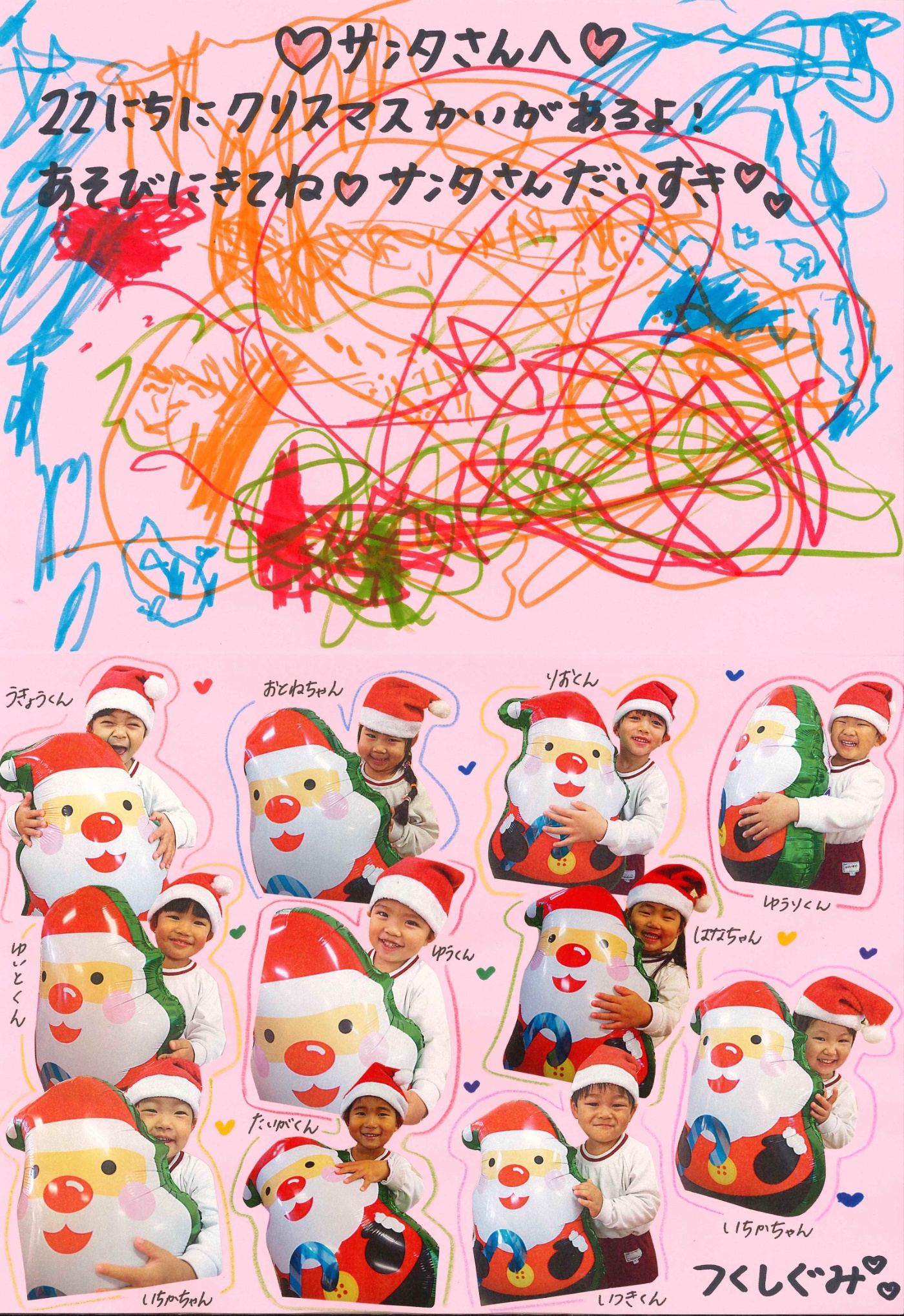 保育園のお友だちが書いた(描いた)手紙を読んで、12月22日、ちょっぴりあわてんぼうのサンタクロースさんがプレゼントをもってクリスマス会に来てくれました。