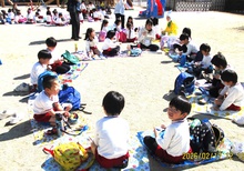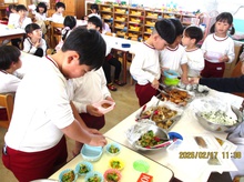 自分でセレクトして空弁当箱におかずを詰め、青空のもとでいただく給食は、格別でしたね。