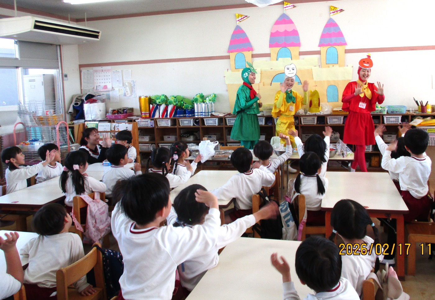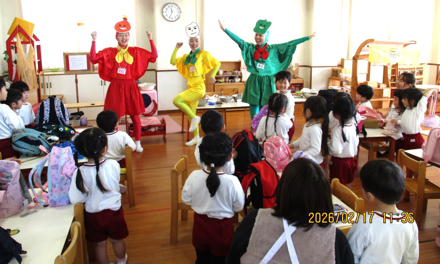 山口県立大学から食育戦隊ゴハンジャーも参上!今日の献立にも3つの栄養素がしっかりバランスよく取り込まれていることはお墨付き!