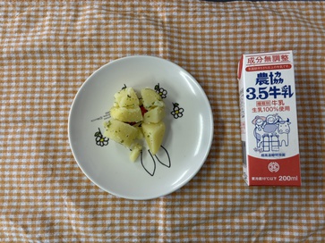 2026年01月21日(水) 給食ブログ 2026/1/21 今日のお味噌汁は、4年保育さんが収穫してくれた大根をたっぷりいれました。 【給食】・ごはん ・肉じゃが ・小松菜のおみそ汁 ・バナナ・いりこ 【おやつ】・牛乳・セレクトサンドイッチ