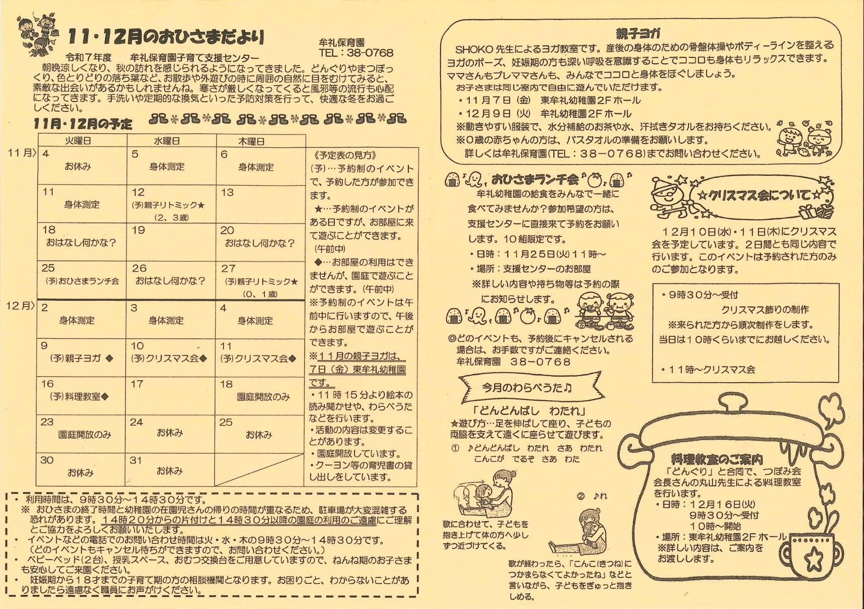 令和7年度 子育て支援センター「11・12月のおひさまだより」