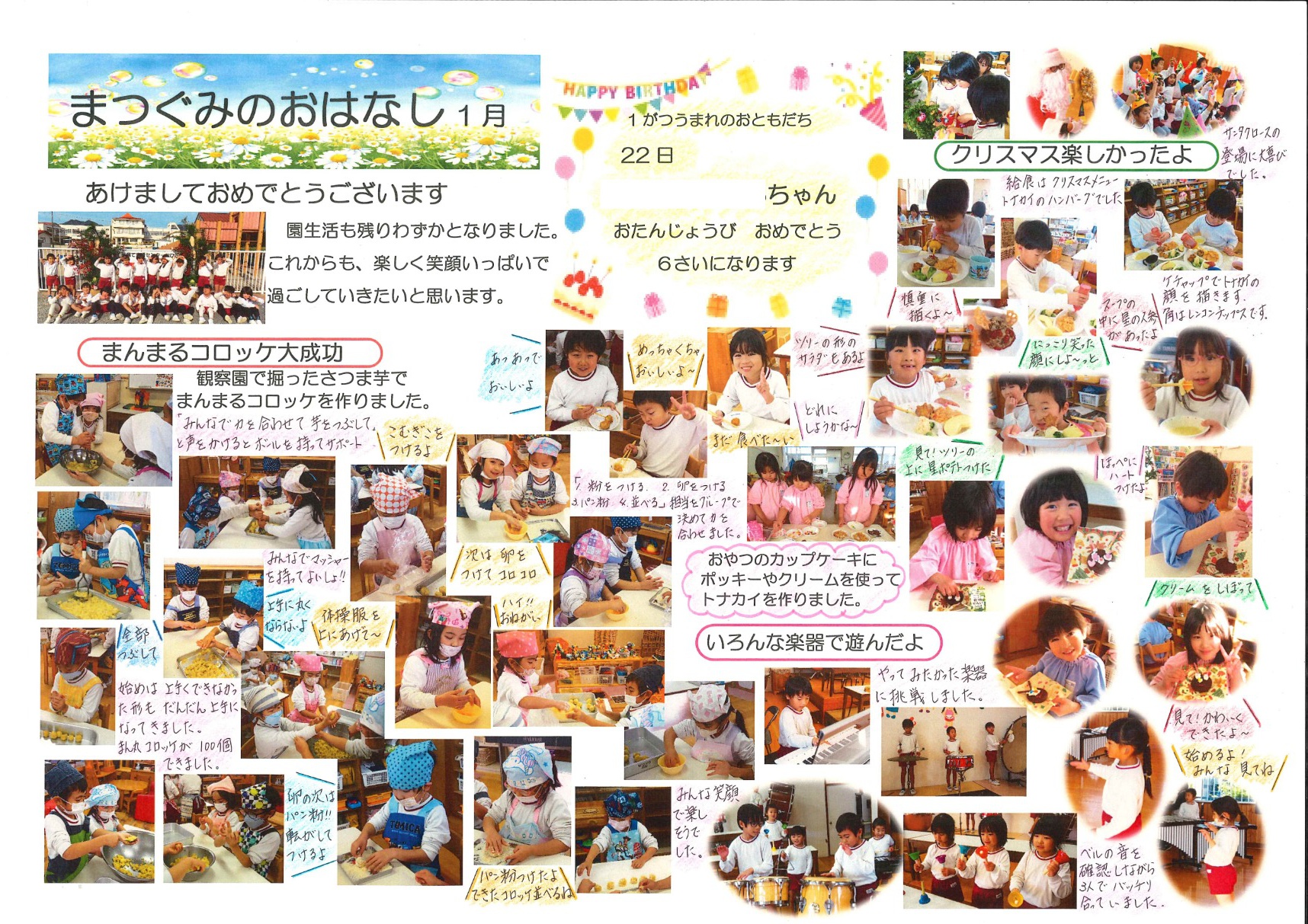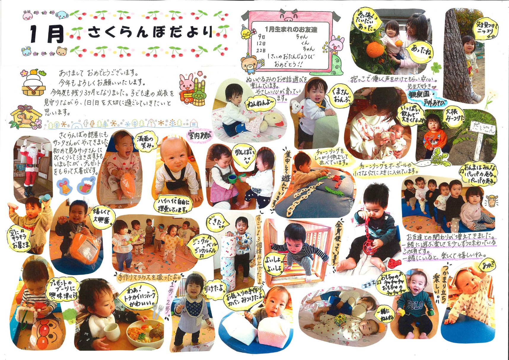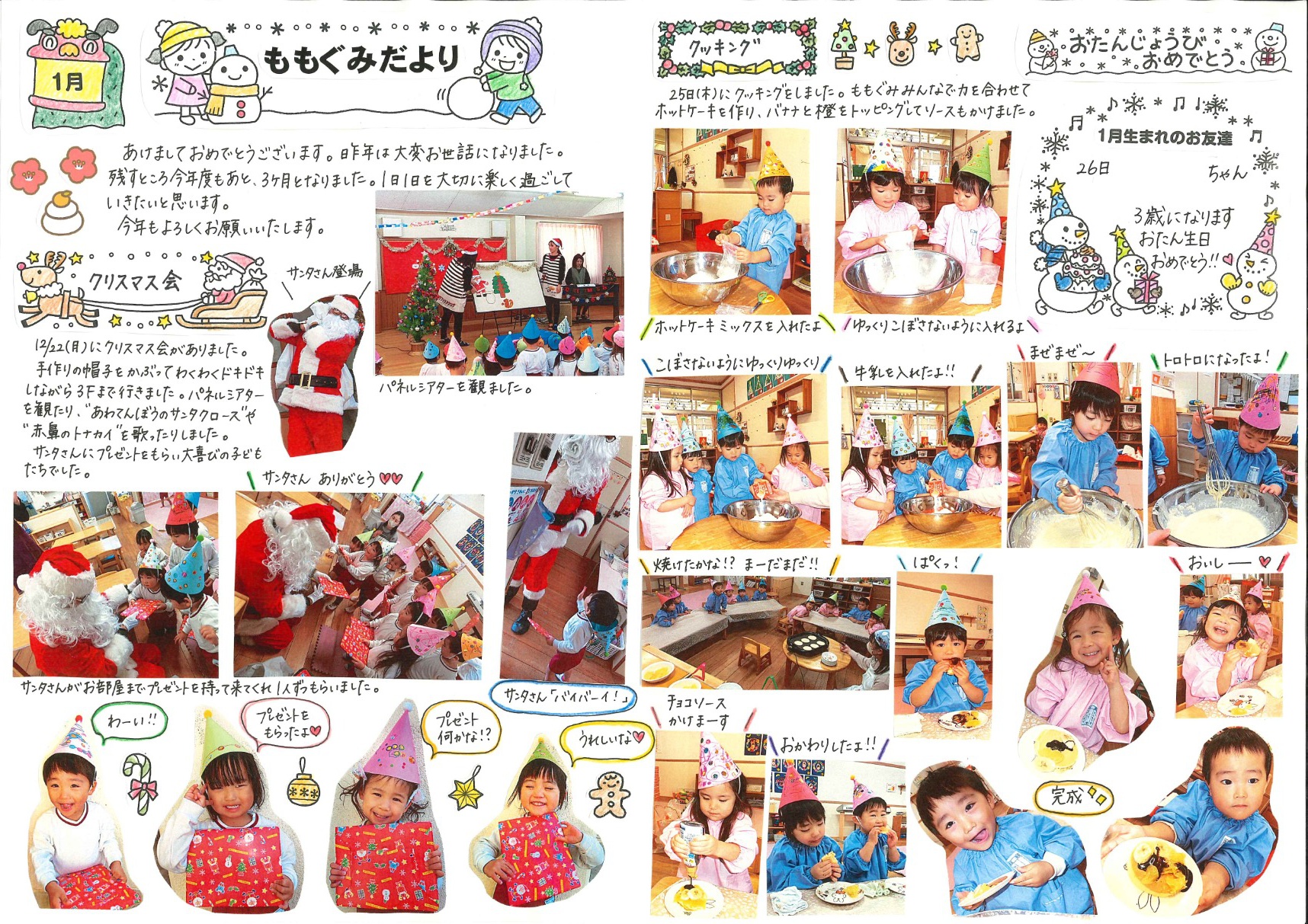 2026年01月08日(木) お知らせ NEW 令和7年度 1月号クラスだより 「さくらんぼ組」(6年保育) 「うめ・こうめ組」(5年保育) 「もも・つくし組」(4年保育) 「さくら組」(年少組) 「すみれ組」(年中組) 「まつ組」(年長組)