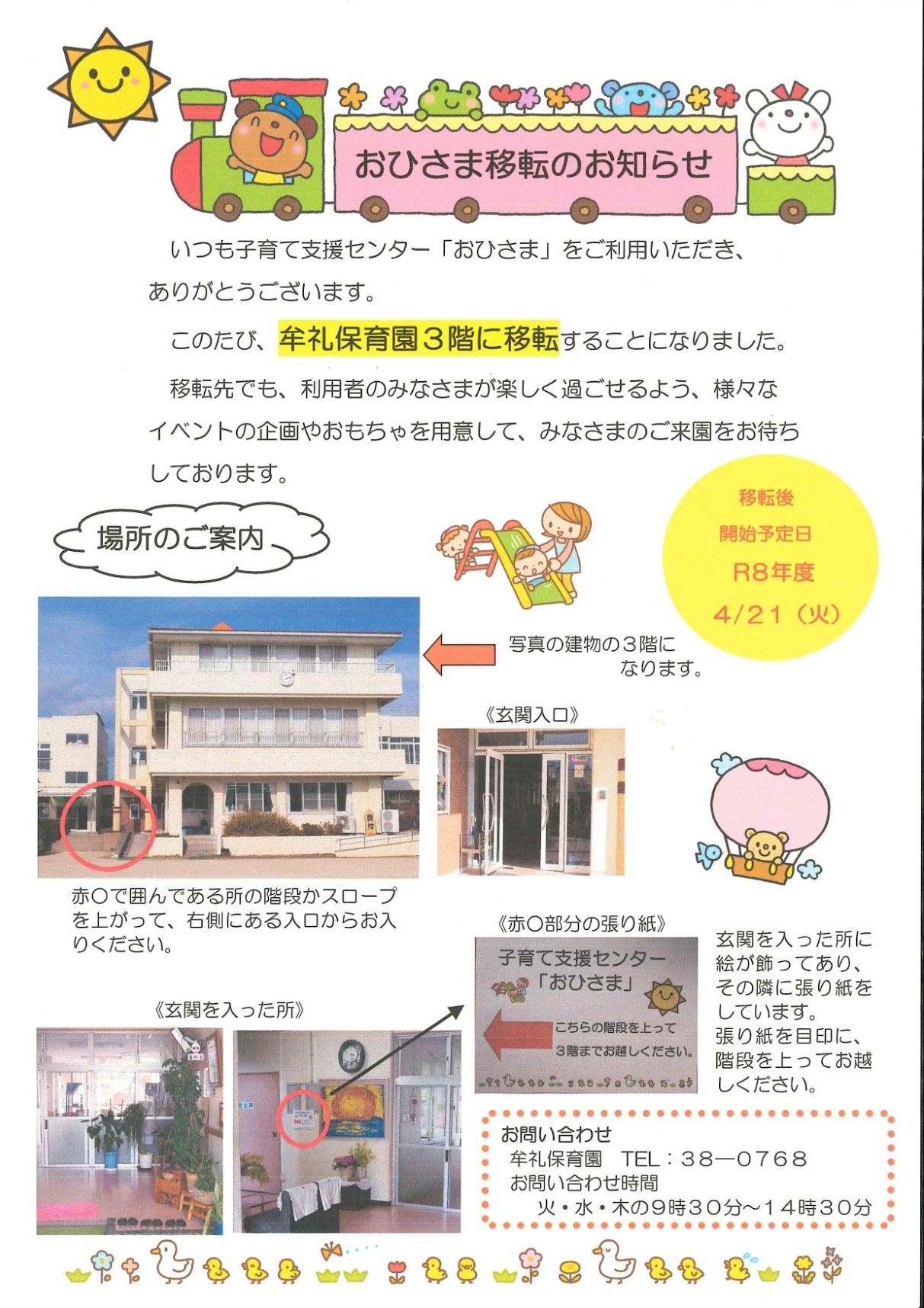 「おひさま移転のお知らせ」(子育て支援センター)