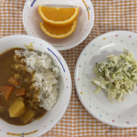 【給食】・カレーライス ・ハムサラダ ・オレンジ ・いりこ 【おやつ】...