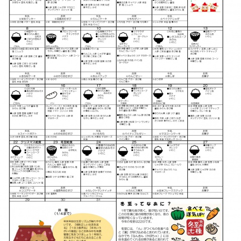 • 12月献立表&わんぱくだより