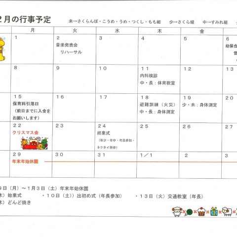 • 令和7年度 12月行事予定