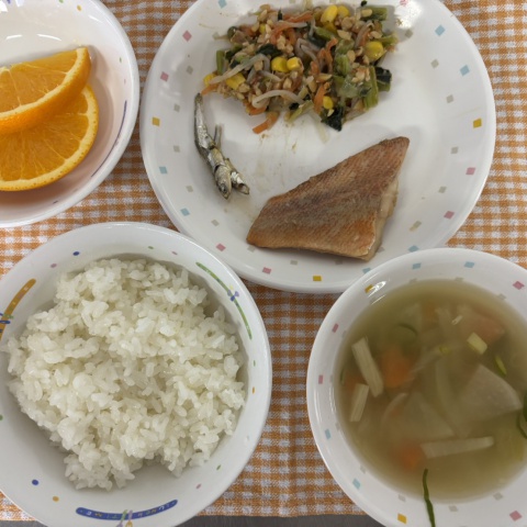 【給食】・ごはん ・赤魚の煮付け ・小松菜の納豆和え ・大根のおみそ汁...