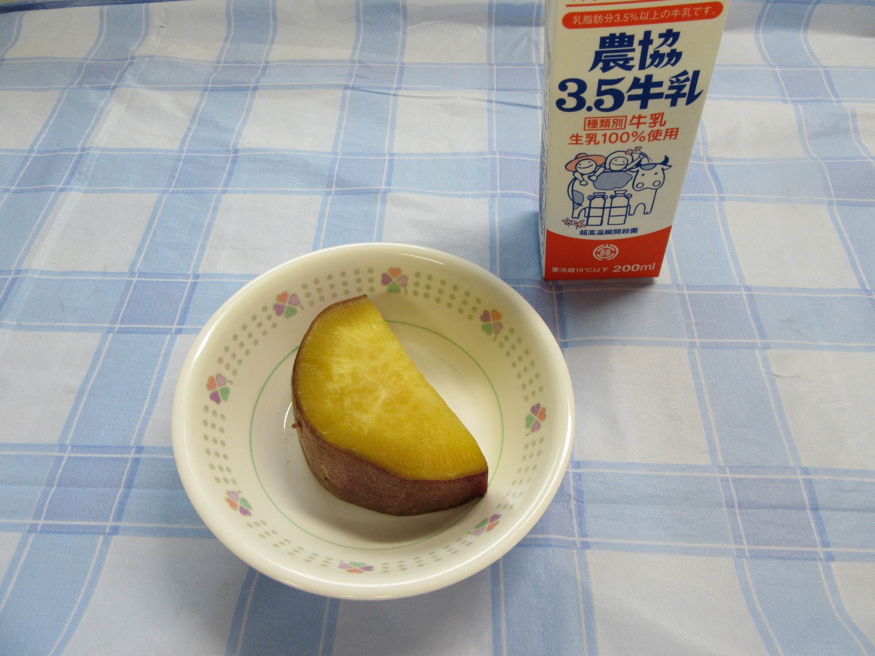 【昼食】ごはん・かつおのごまがらめ・ゆでスナップえんどう・キャベツのお味噌汁・りんご・いりこ