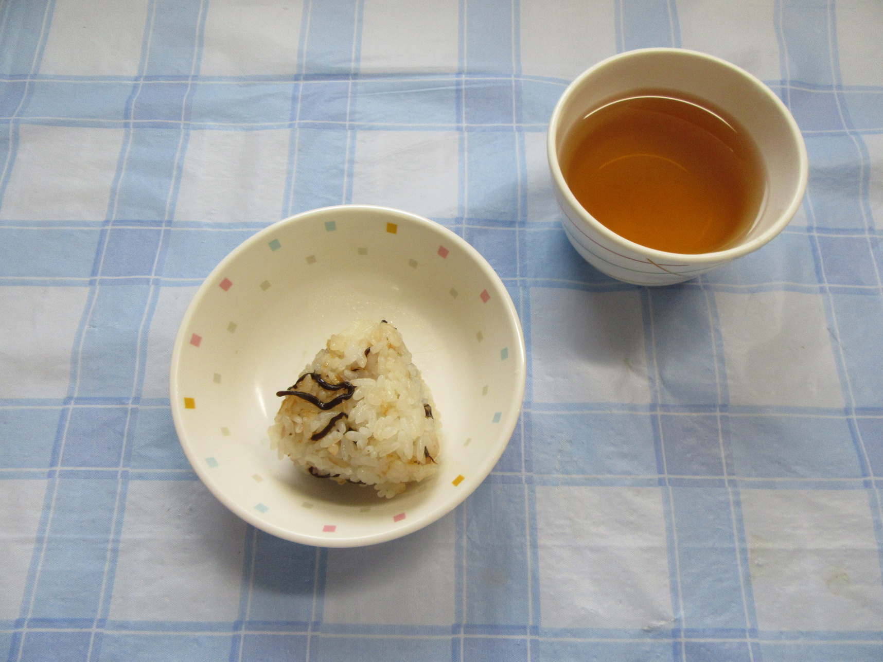 【おやつ】お茶(未満児は牛乳)・塩昆布おむすび