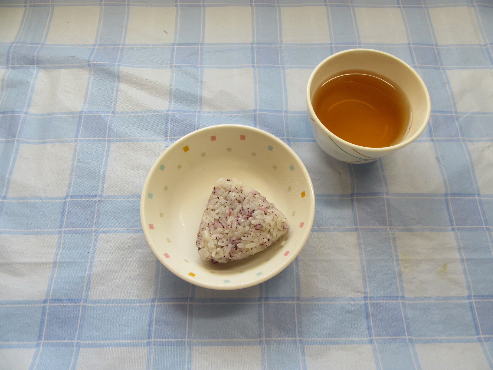 【おやつ】お茶(未満児は牛乳)・ゆかりおむすび