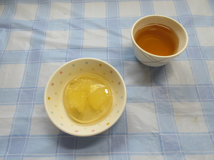【おやつ】お茶(未満児は牛乳)・りんごゼリー