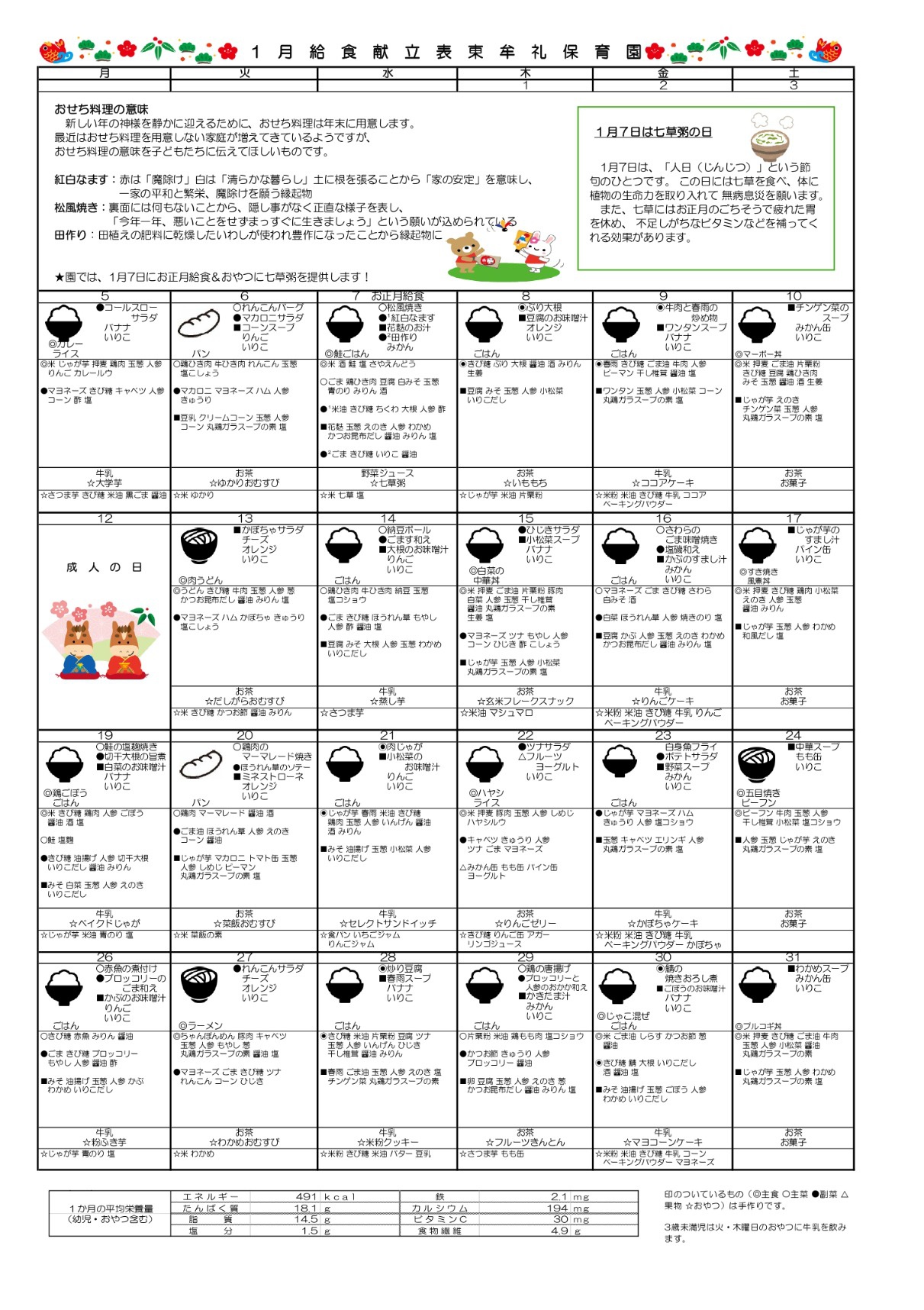 1月献立表