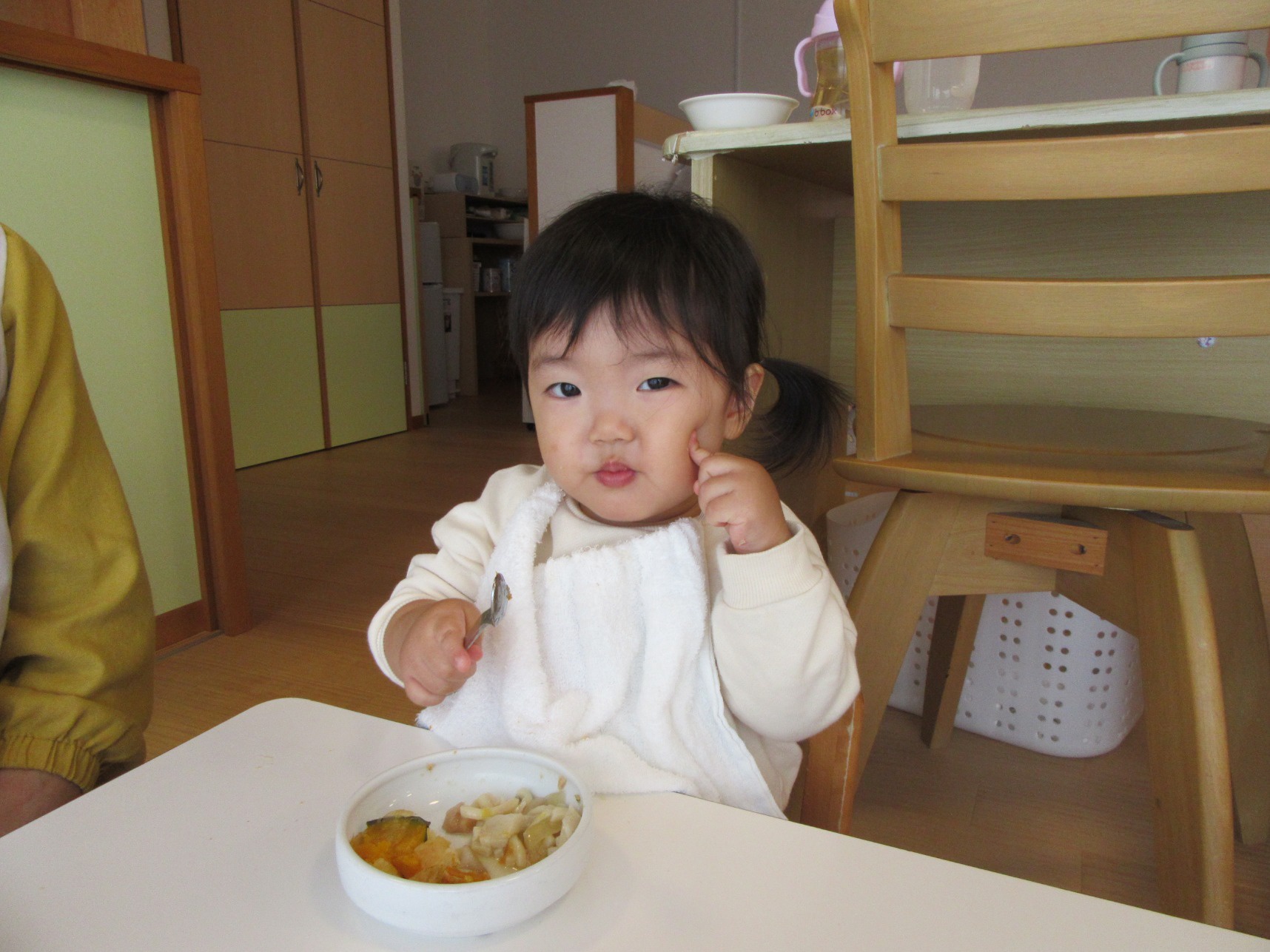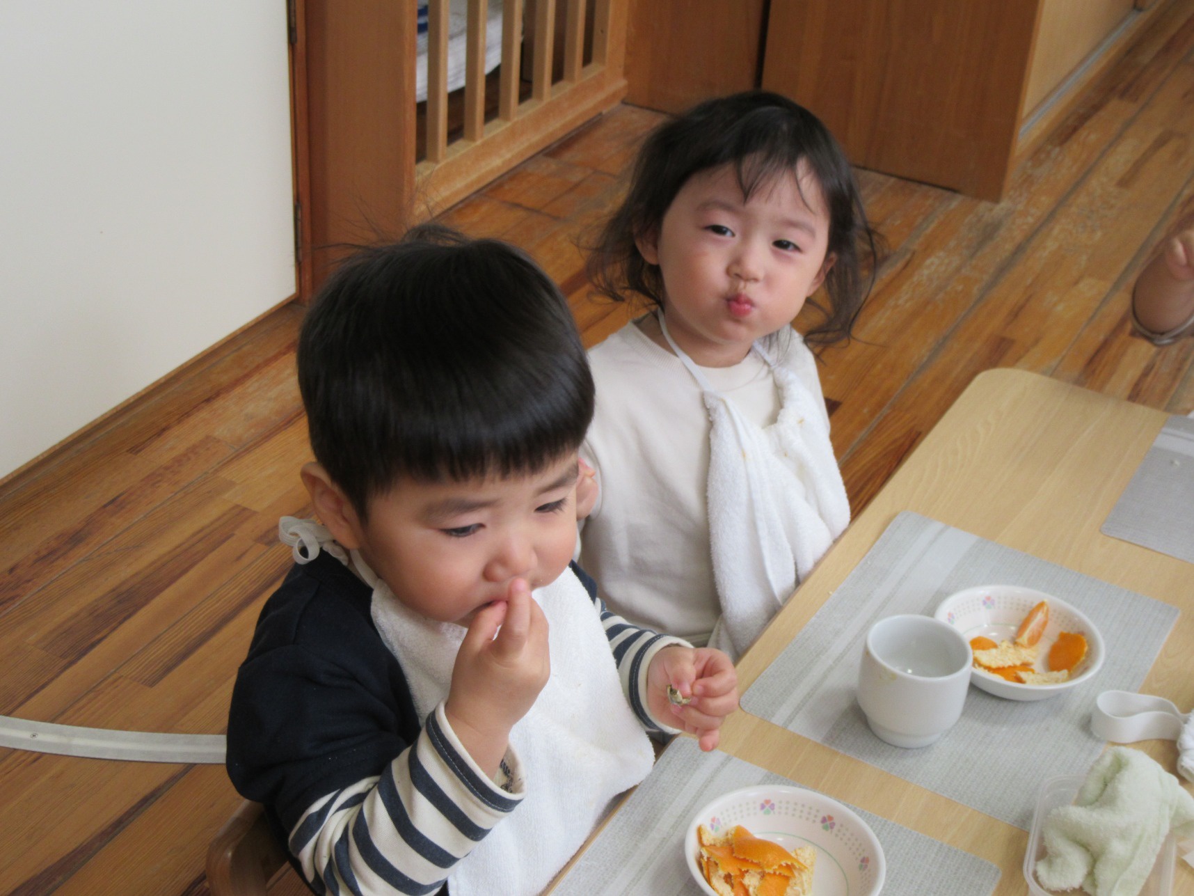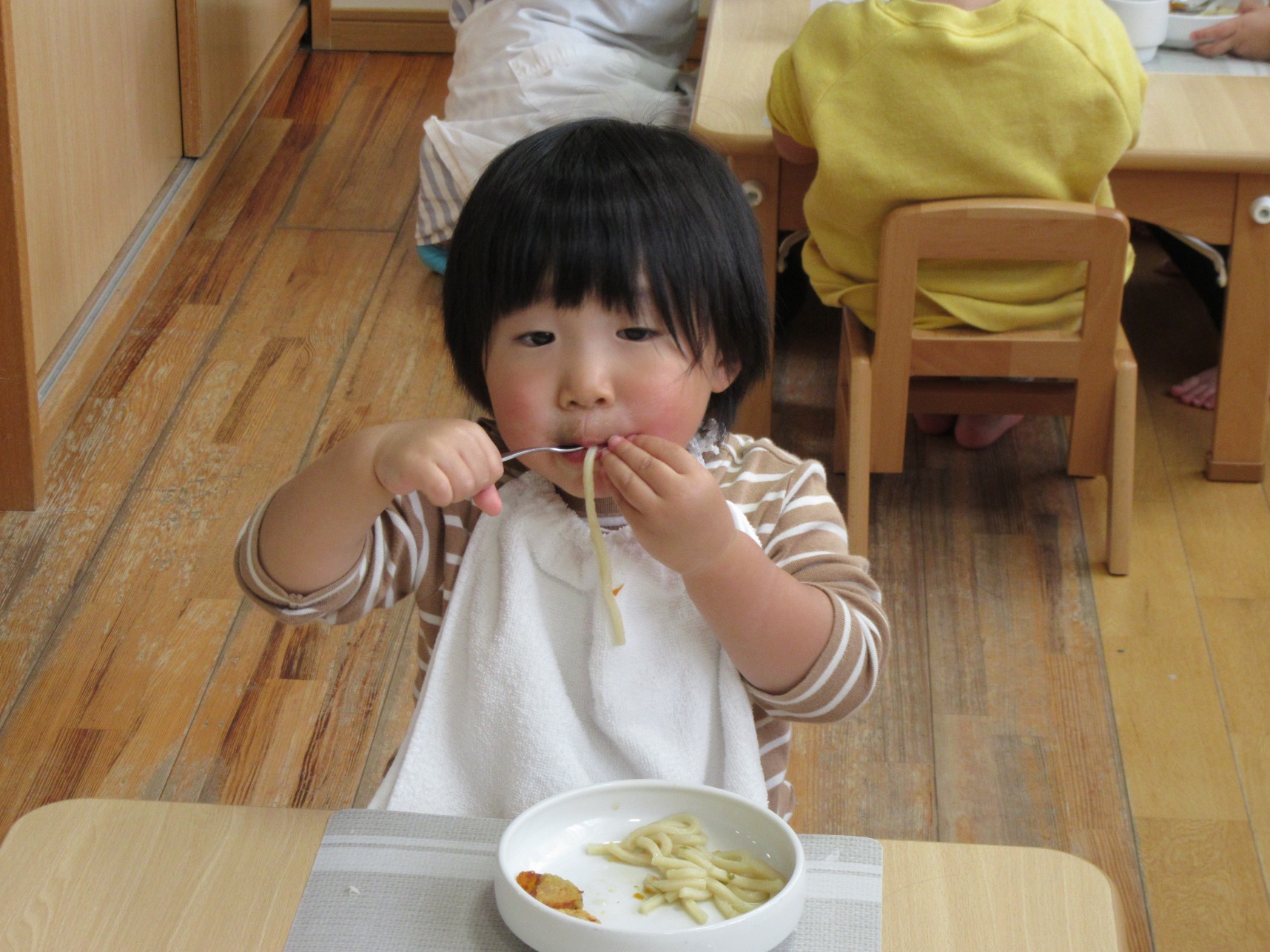 2026年01月08日(木) 給食ブログ NEW 2025.12.22 冬至 【昼食】けんちんうどん・かぼちゃの天ぷら・白菜のツナ柚子和え・みかん・いりこ 【おやつ】牛乳・塩昆布おむすび 今日は1年で最も夜が長く、昼が短い『冬至』です。冬至には「ん」がつく食べ物を食べると運が呼び込めると言われています。今日のお給食には、なんきん(かぼちゃ)・にんじん・だいこん・れんこん・うどん・みかんを使用しました。根菜は苦手な子が多いですが、大好きなうどんだと一緒によく食べていました。かぼちゃの天ぷらも大人気でした。柚子を使った和え物はいつもよりフレッシュな香りで、子どもたちも「いい匂いがするね」「ちょっと酸っぱい~」と言っていました。しっかり食べて元気も、運気もアップしますように!
