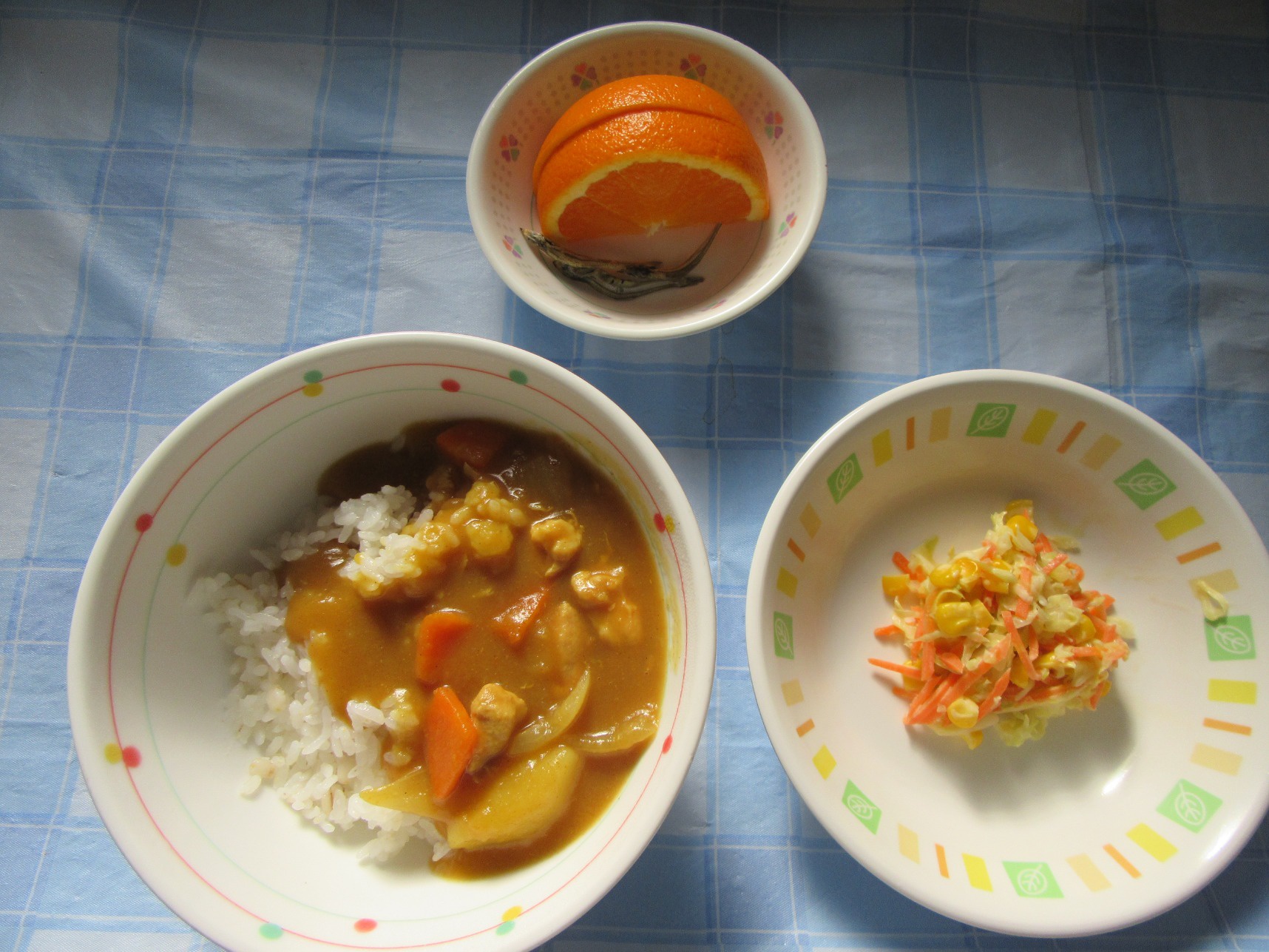【昼食】カレーライス・コールスローサラダ・バナナ・いりこ