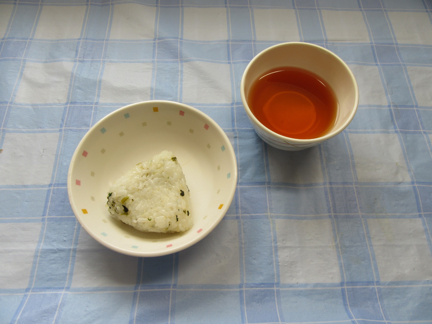 【おやつ】お茶(未満児は牛乳)・菜飯おむすび