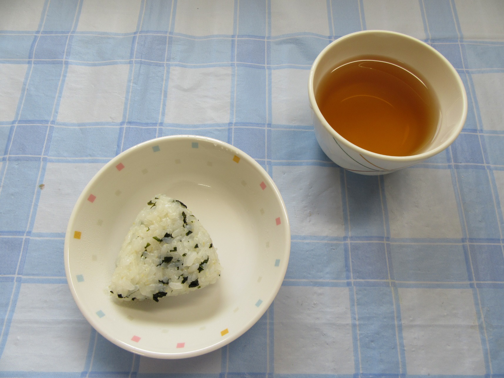 【おやつ】お茶(未満児は牛乳)・わかめおむすび