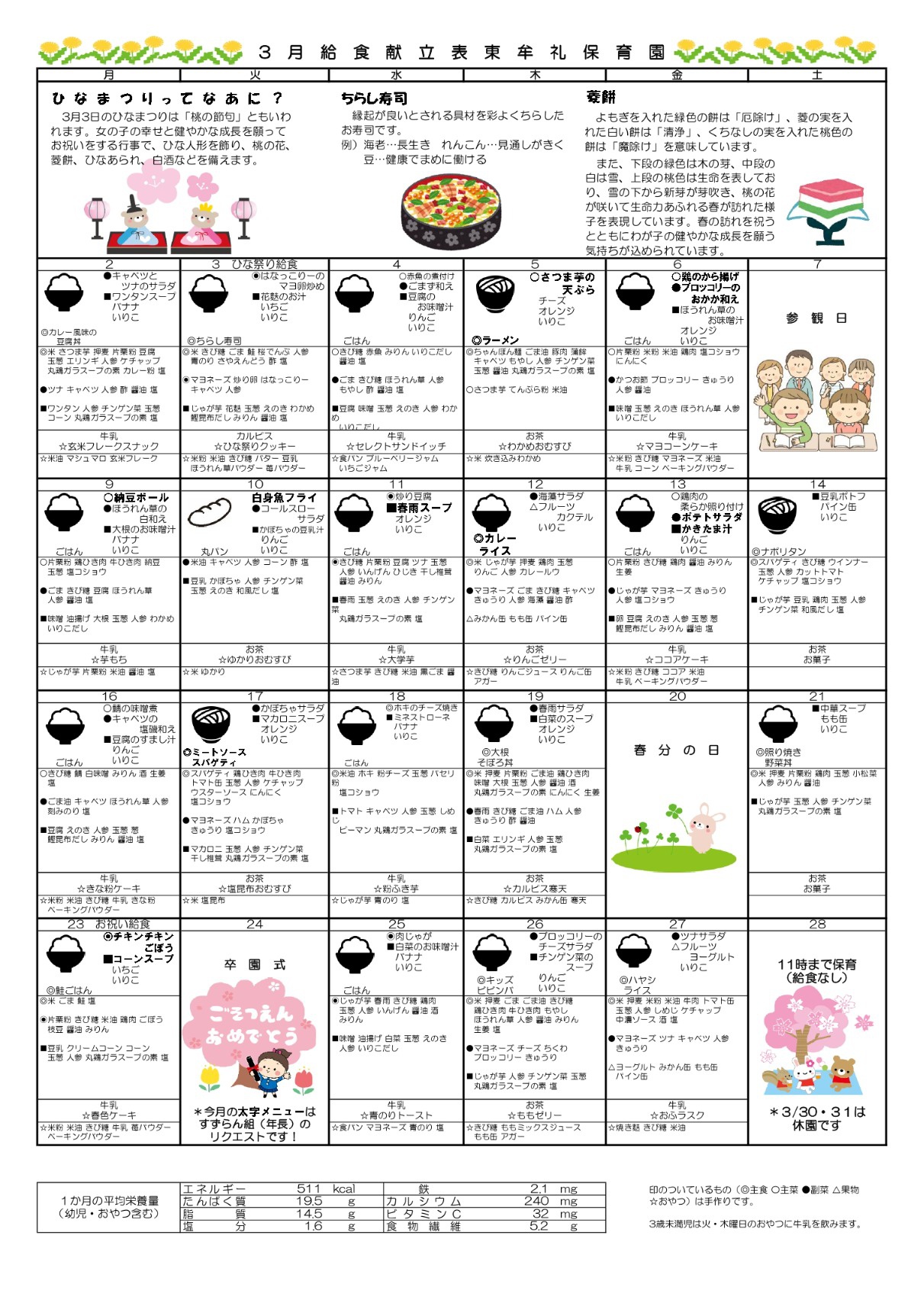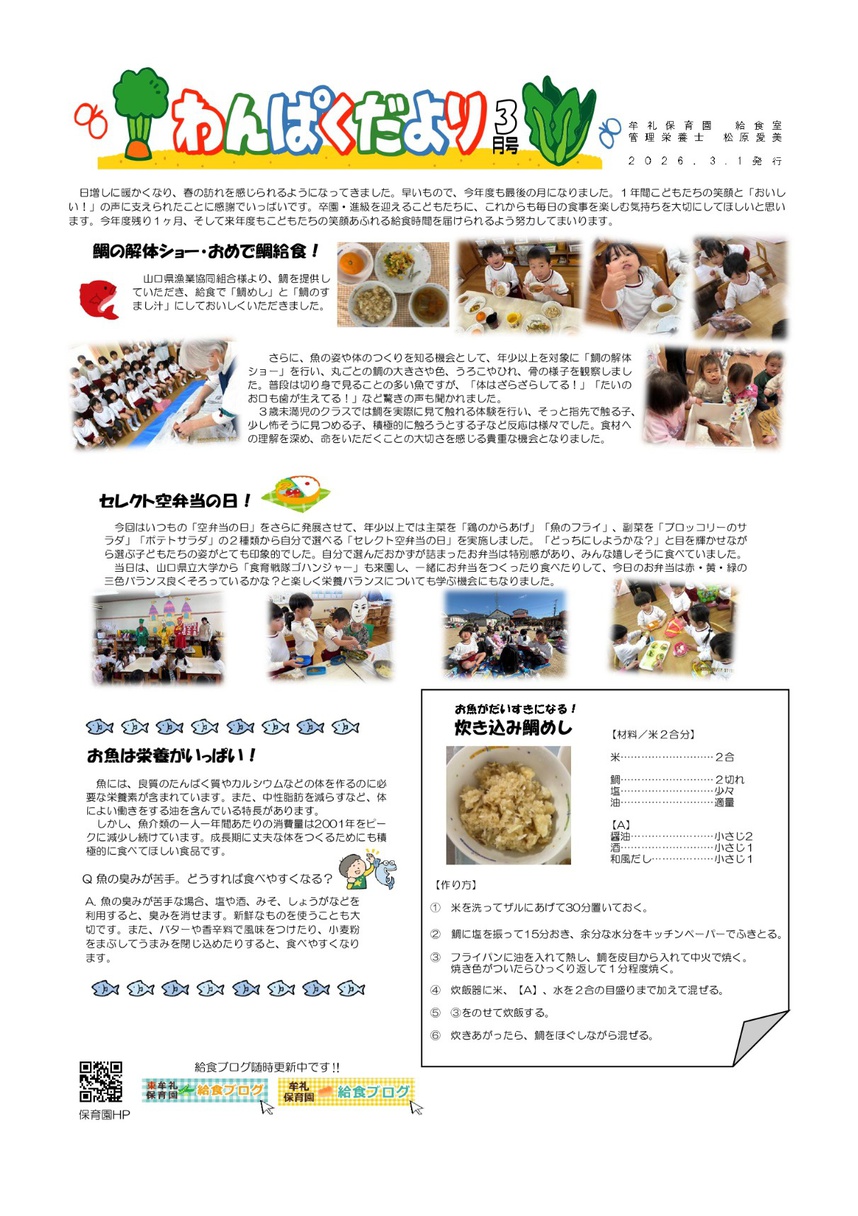 3月献立表&わんぱくだより