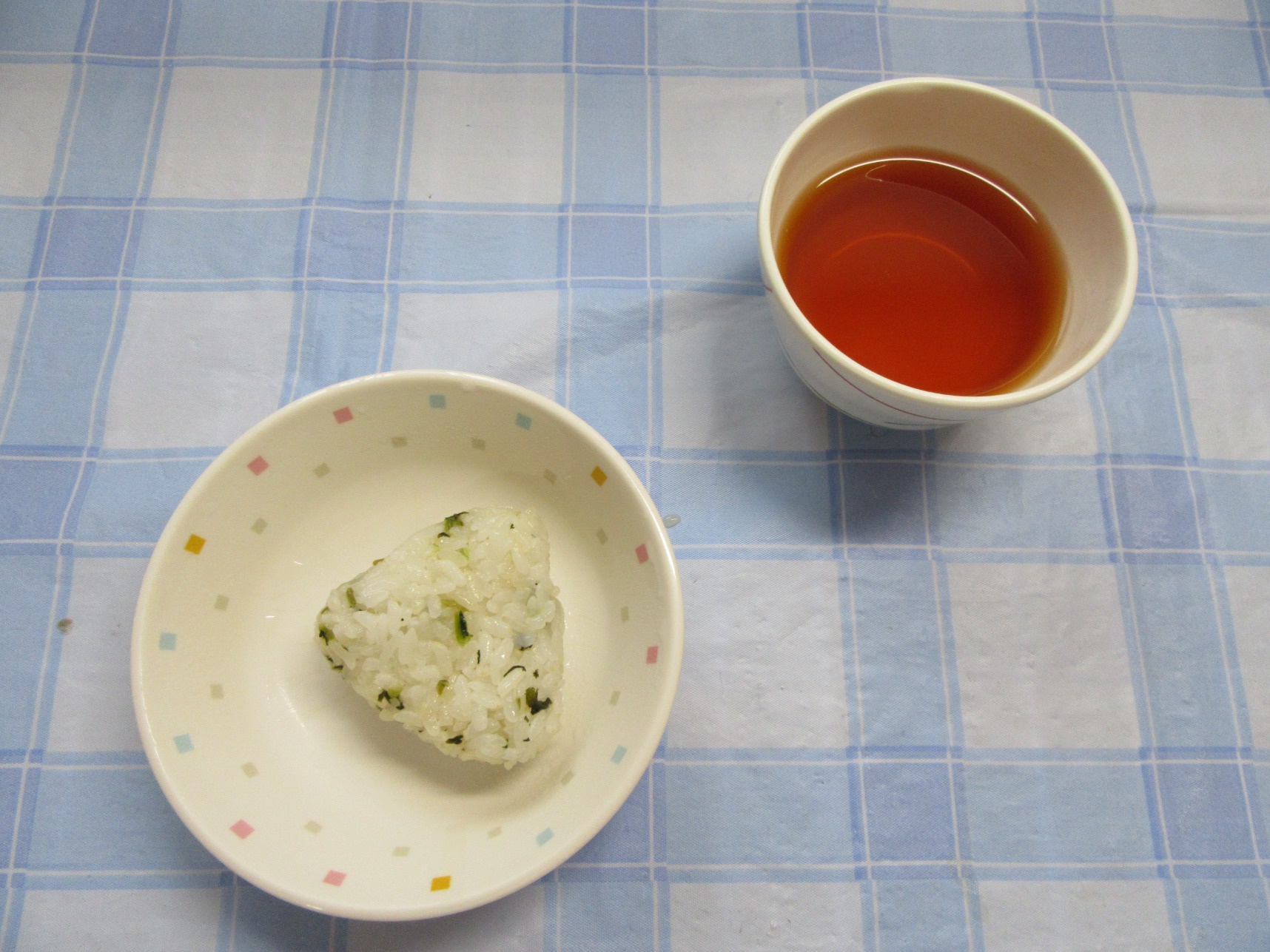【おやつ】お茶(未満児は牛乳)・わかめおむすび