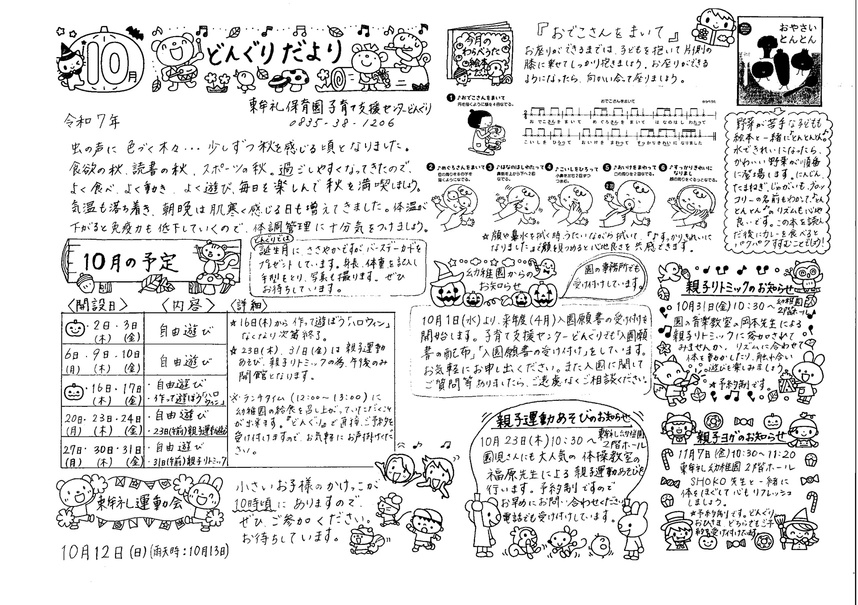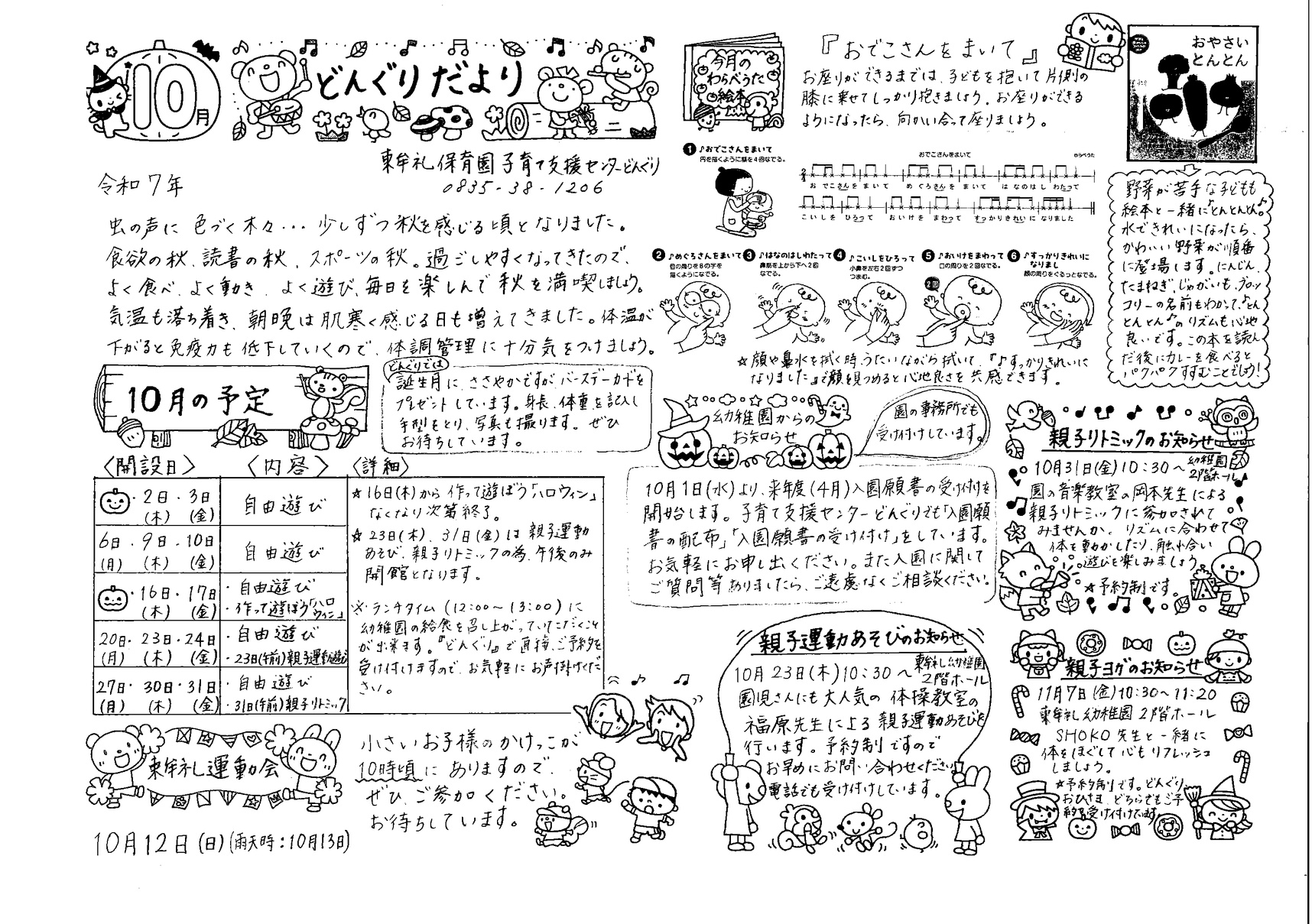 令和7年度 子育て支援センター「どんぐりだより」 10月号