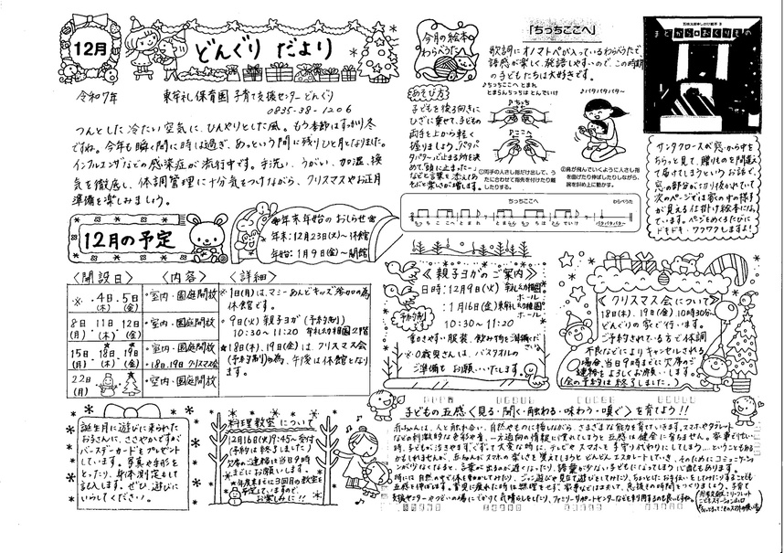 令和7年度 子育て支援センター「どんぐりだより」12月号