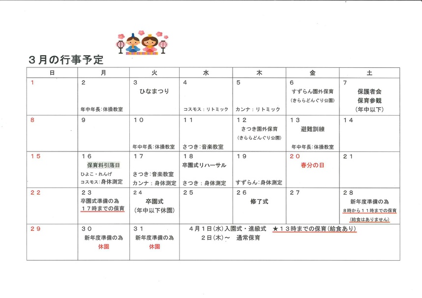 令和7年度 子育て支援センター「どんぐりだより」3月号