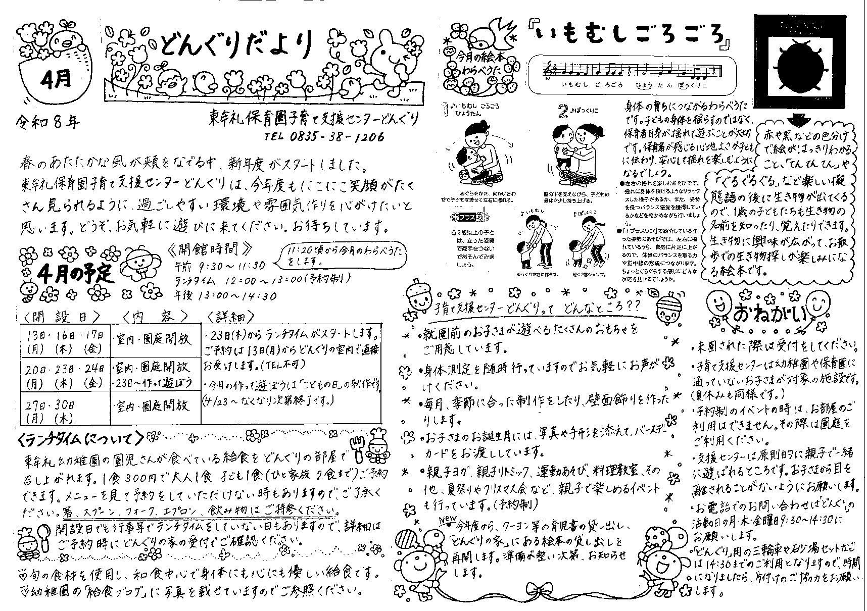 令和8年度 子育て支援センター「どんぐりだより」4月号