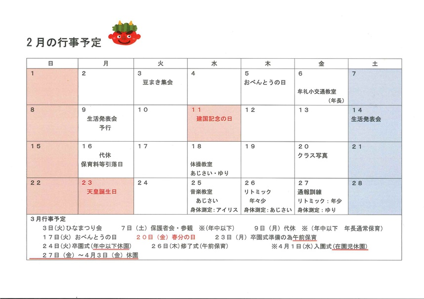 2026年02月03日(火) お知らせ