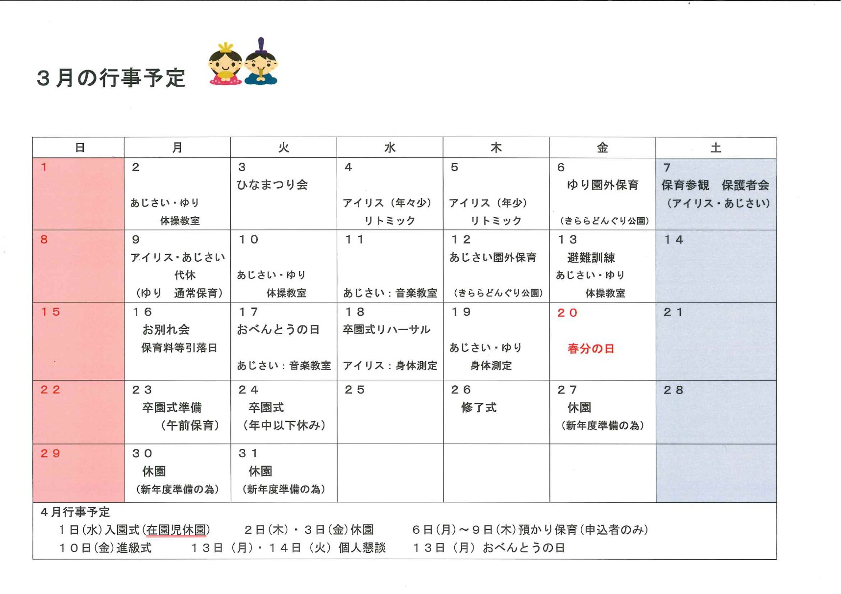 3月の行事予定