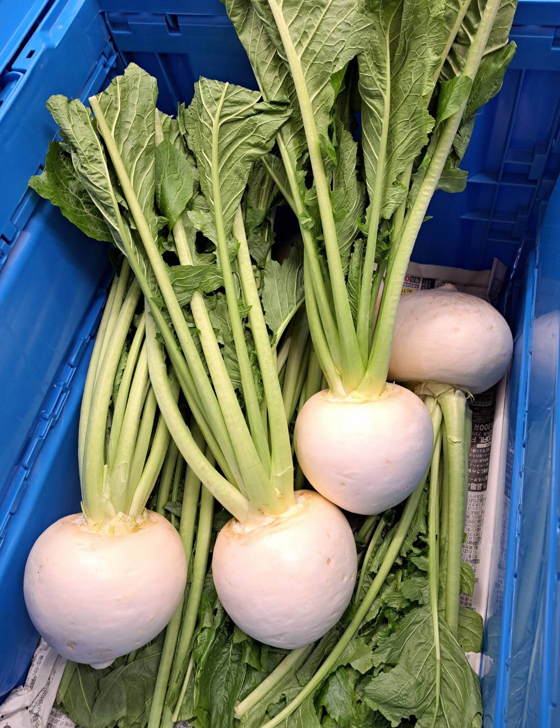 2025年12月18日(木) 幼稚園給食 鶏とかぶのスープ ・豆腐丼カレー風味(麦ごはん) ・鶏とかぶのスープ ・みかん ・いりこ 鶏とかぶのスープは、昆布とかつおで出汁をとり、鶏も入ってるのでとても風味のよいお汁になりました。出汁がしっかりしているので調味料は、塩と濃口醤油のみです。 スープに入れたかぶです。立派な葉っぱも小さく刻んで入れました。
