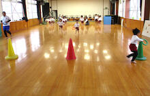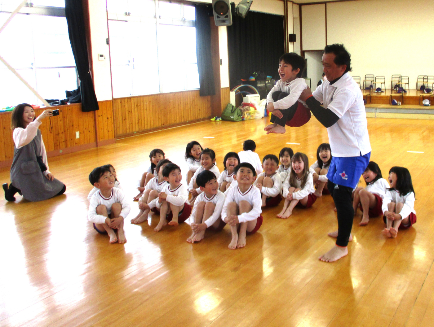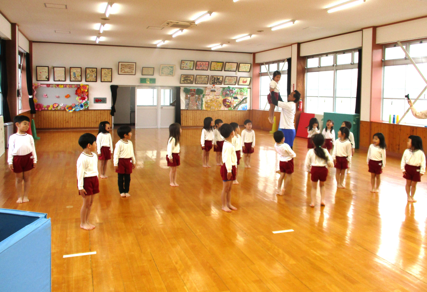 2026年04月15日 ドキドキ!初めての体育教室【年中組】 年中組さんから始まる「体育教室」。ワクワク ドキドキ、心躍らせてホールに向かうすみれ組さん。体育講師の福原健介先生のテンポ感あふれる指導のもと、ちょっぴり緊張した心と身体をほぐしながら、運動遊びに挑戦しました。 三角座り(体育座り)が上手なお友だちにはこんなご褒美が! 気を付けの姿勢がいいお友だちにも! 身体ほぐしの体操。こんなことできるかなあ⁈ 最後は4チームに分かれてリレーあそび。全力疾走! 来週水曜日の体育教室が待ち遠しいですね!