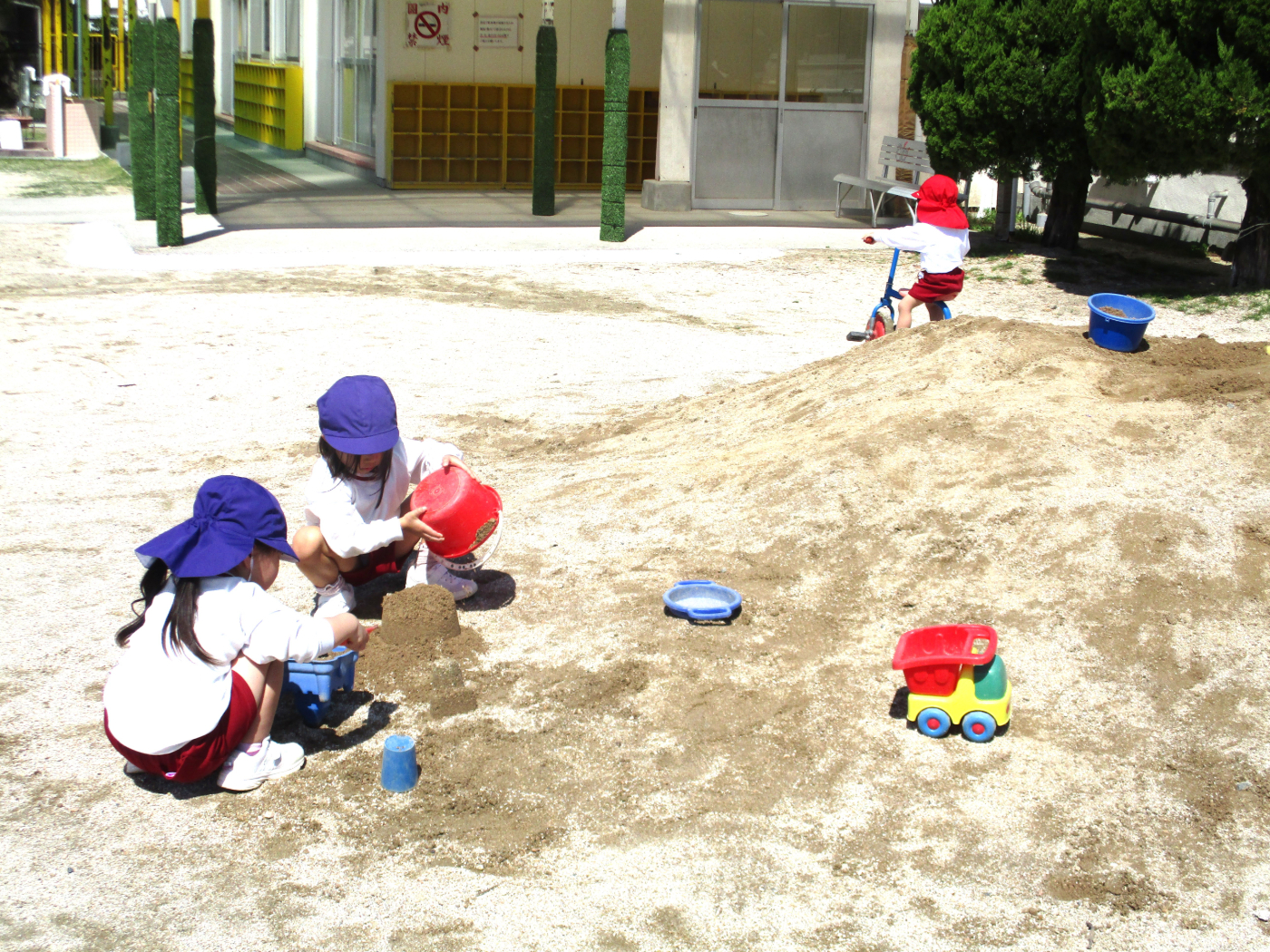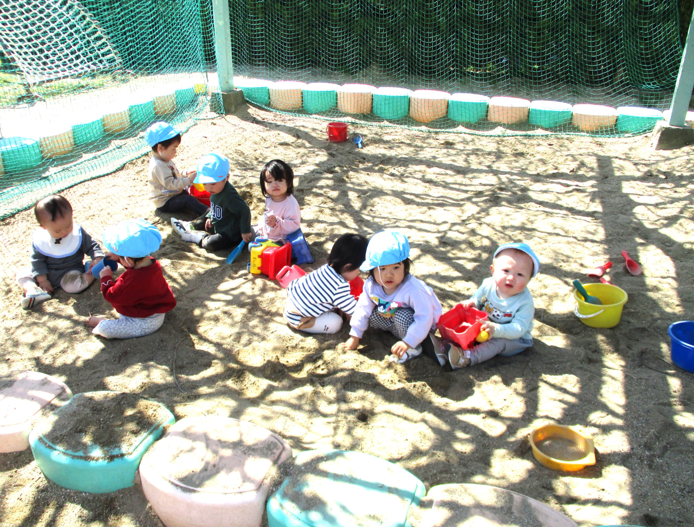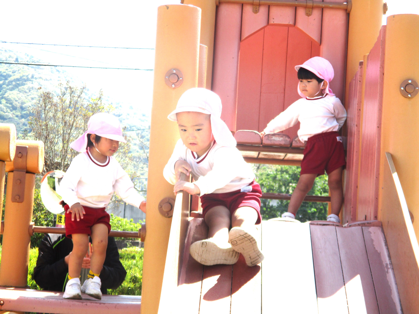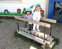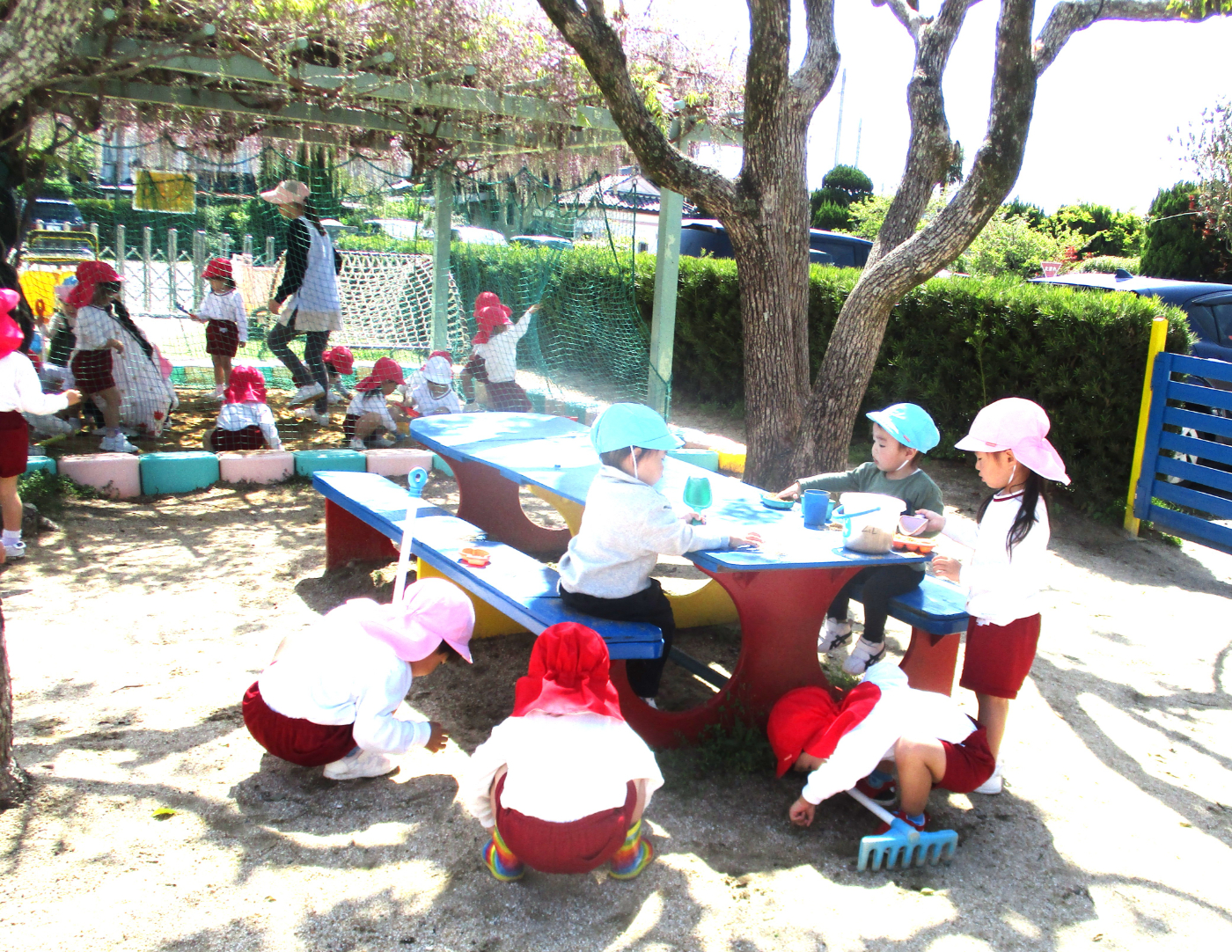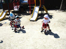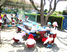 2026年04月21日 4月の戸外遊び 春の陽気に誘われて、子どもたちは元気いっぱいお気に入りの遊びを繰り広げています。 自分のマークがついた靴箱から自分の靴を見つけて・・・いざ出発! 5・6年保育さんに大人気のインクルーシブ遊具 三輪車で散策するとわずかな起伏もワクワク スリリング! いつだって砂場は心のよりどころ!魅力満載! 築山の真砂土は、砂場とは一味違う感触! 自然にレストランごっこに発展! アスレチックに登ると見晴らし抜群!