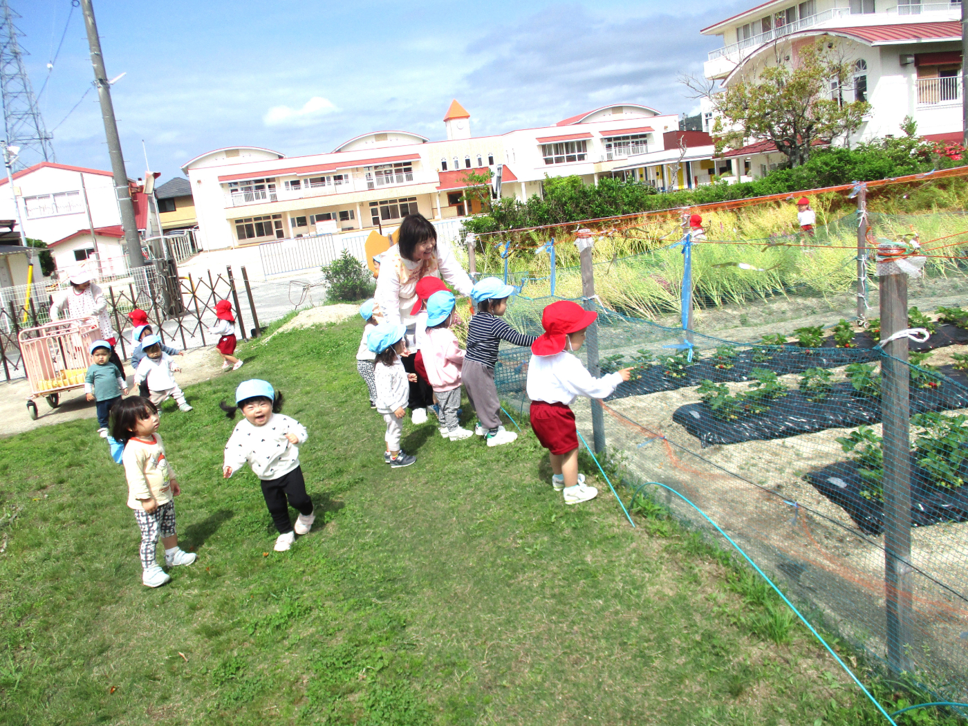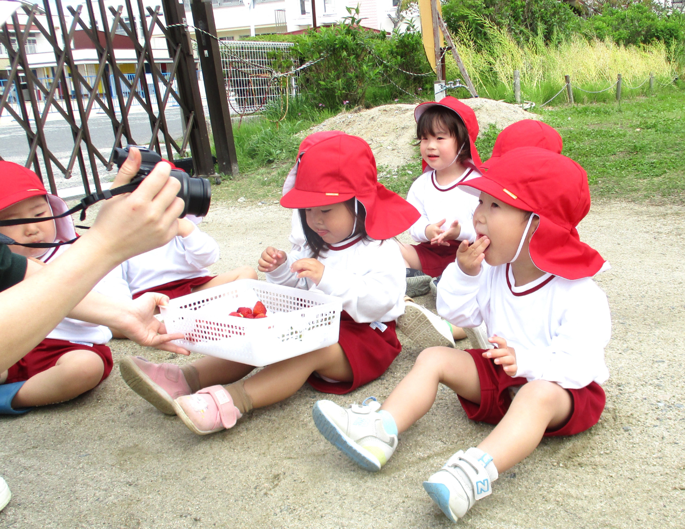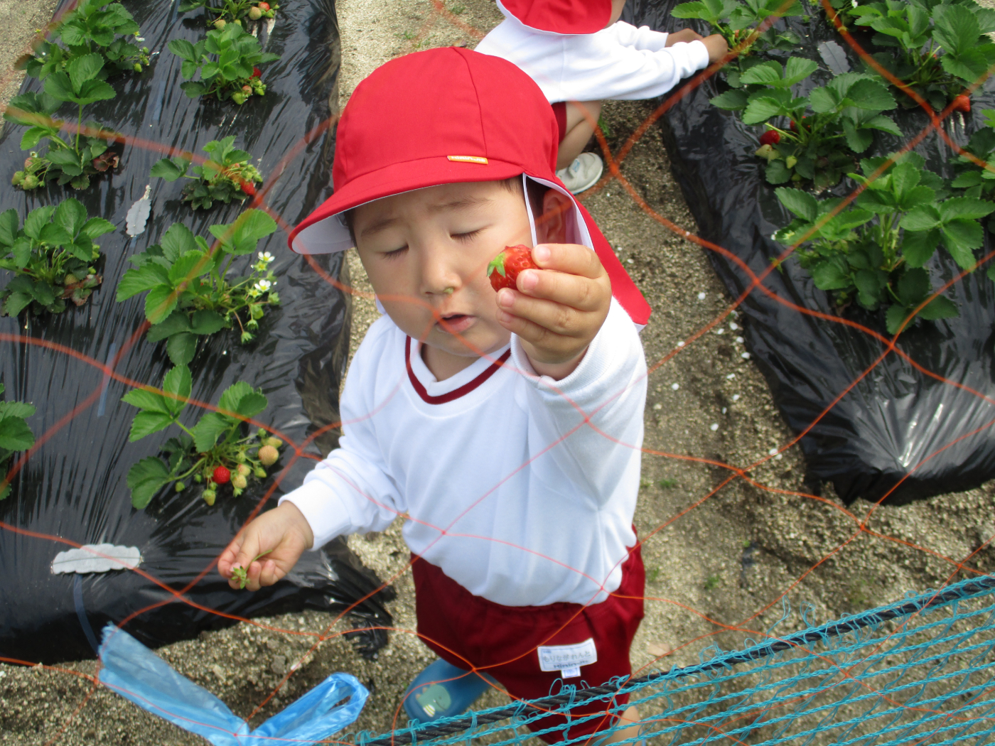 2026年04月25日 真っ赤なイチゴをみつけたよ! 観察園では冬の間もたくましく生長を続け、かわいい白い花をたくさん咲かせていたイチゴが収穫時を迎え、次々に美しい赤い実を輝かせています。幼稚園・保育園で順番を決め、『イチゴ狩り』を楽しんでいます。 いちご畑は5月中旬まで賑わいをみせることでしょう。今後の「イチゴ便り」もお楽しみに!