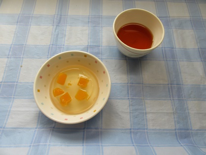【おやつ】お茶(未満児は牛乳)・ももゼリー